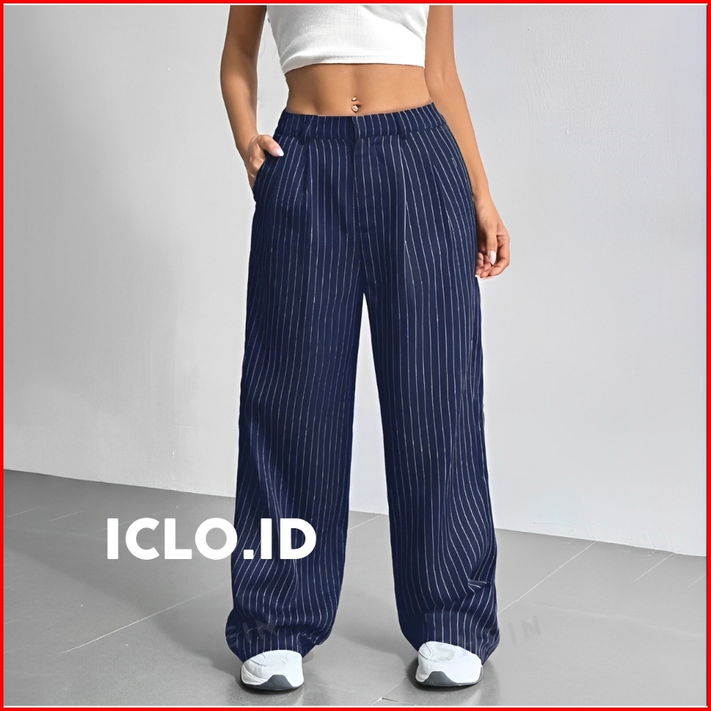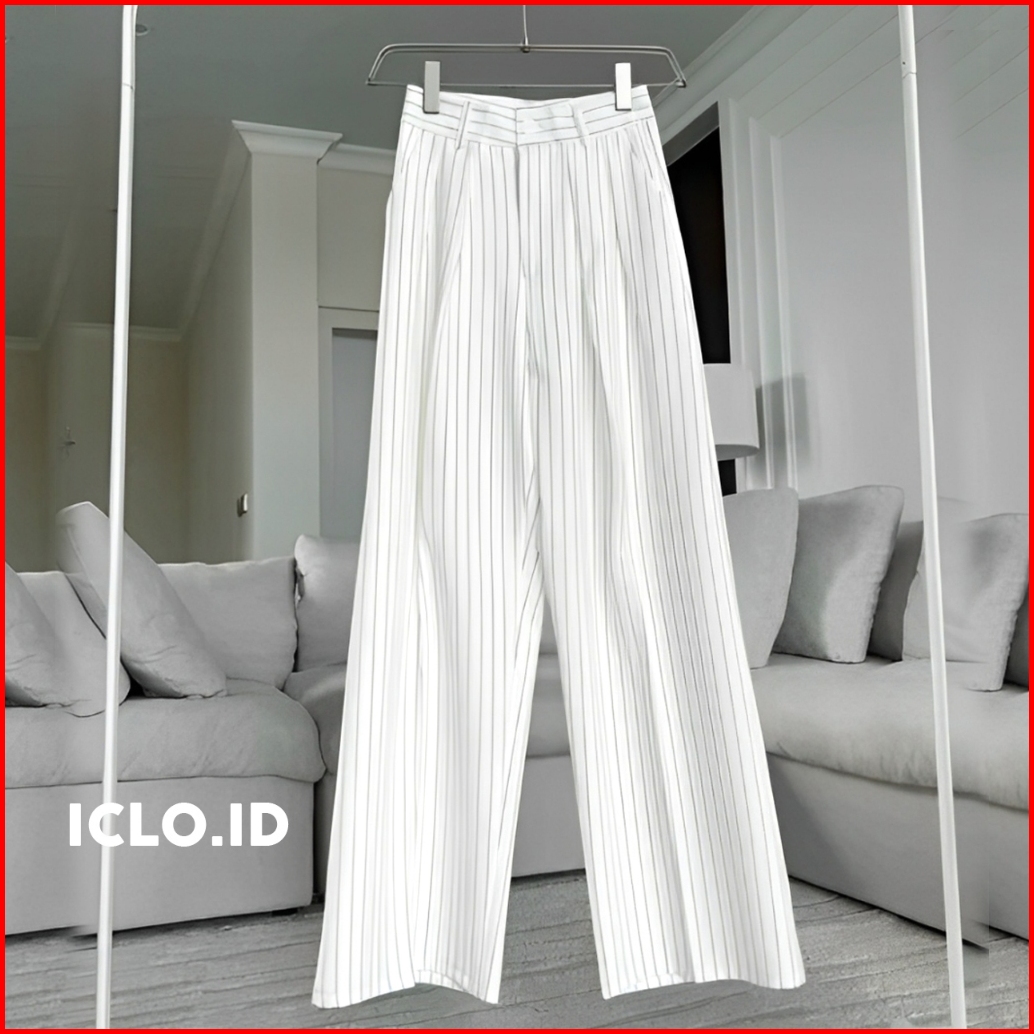 Stripe Pants - Loose Pants Stripe Celana Kulot Wanita Jumbo Anti Kusut Highwaist Premium - Celana Stripe Wanita Garis Sa