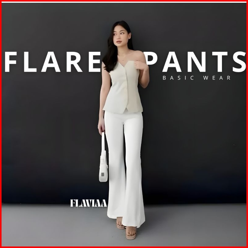 Celana Fit And Flare Pants Cutbray Knit Pinggang Highwaist Bahan Stretch Melar Kulot Cutbray Wanita