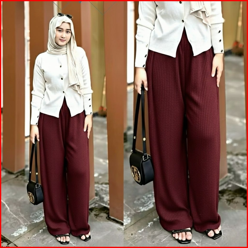 Loose Pants Rajut Premium High Waist Jumbo Bb 70 - 130 Kg Celana Kulot Longgar Wanita Terbaru