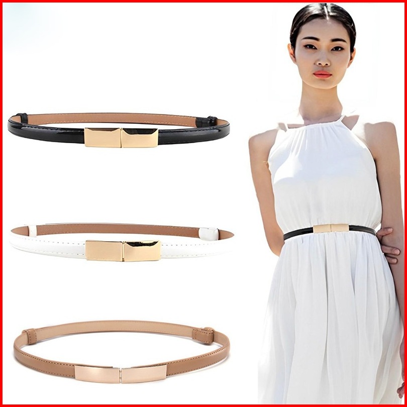 Unionatk Ikat Pinggang Wanita Kulit Imitasi Slim Casual Warna Warni Dengan Gesper