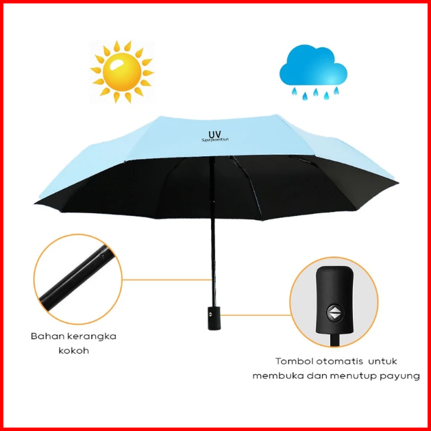 Payung Lipat Anti Uv Premium Otomatis Manual Foldable Umbrella Automatic Korea Manual Buka Tutup Fold Matahari Hujan Cer
