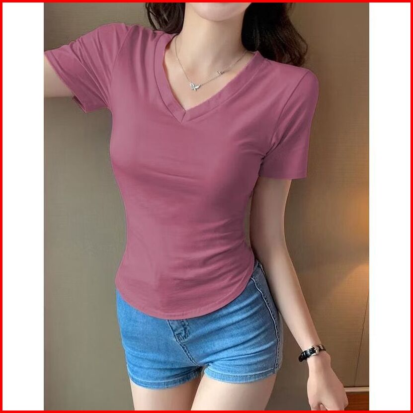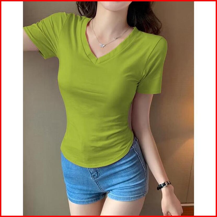 Fd Fashion Kaos Crop Top Kerah V-neck Crop Top Oval Lengan Pendek 6028
