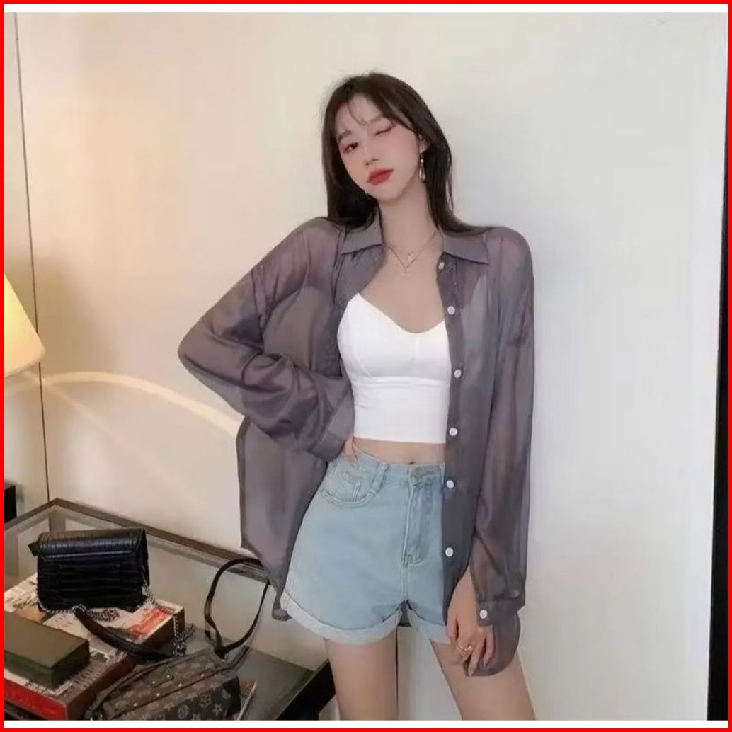 Ami Collection - Kemeja Transparan Kemeja Korean Style Kemeja Oversize Lengan Panjang