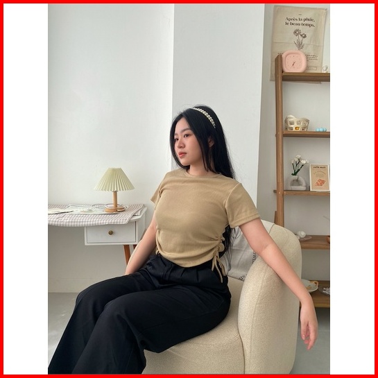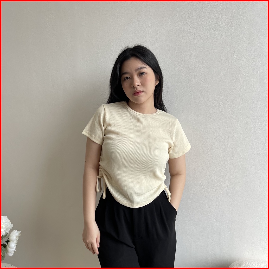 Sesil Top L Crop Top Tali Serut L Rib Knit Premium L Kamisol Wanita L Tank Top L Rajut Premium