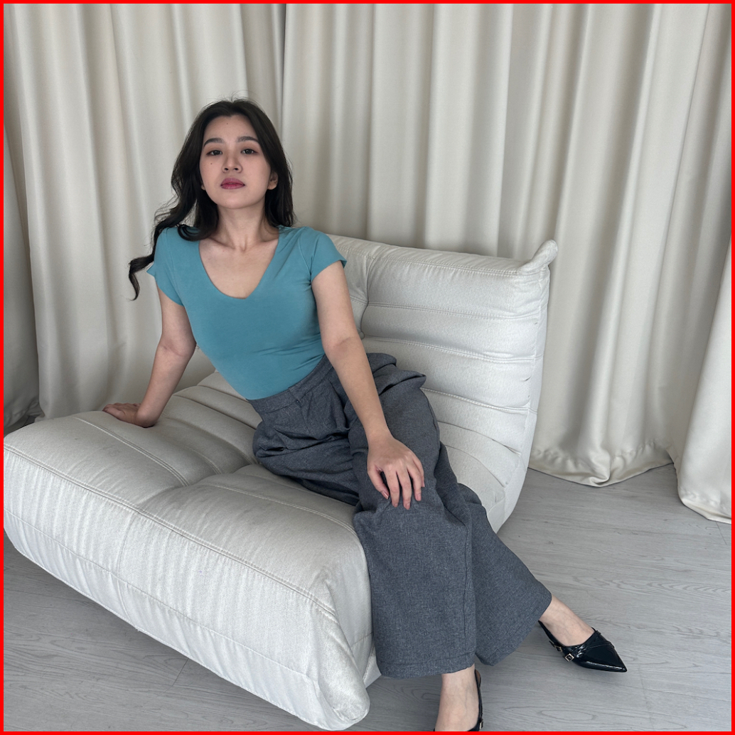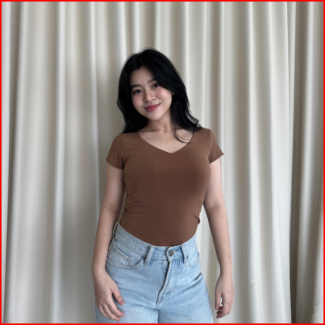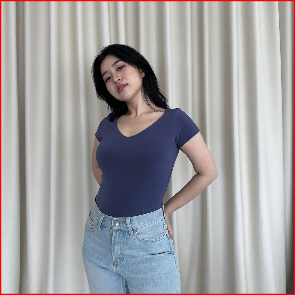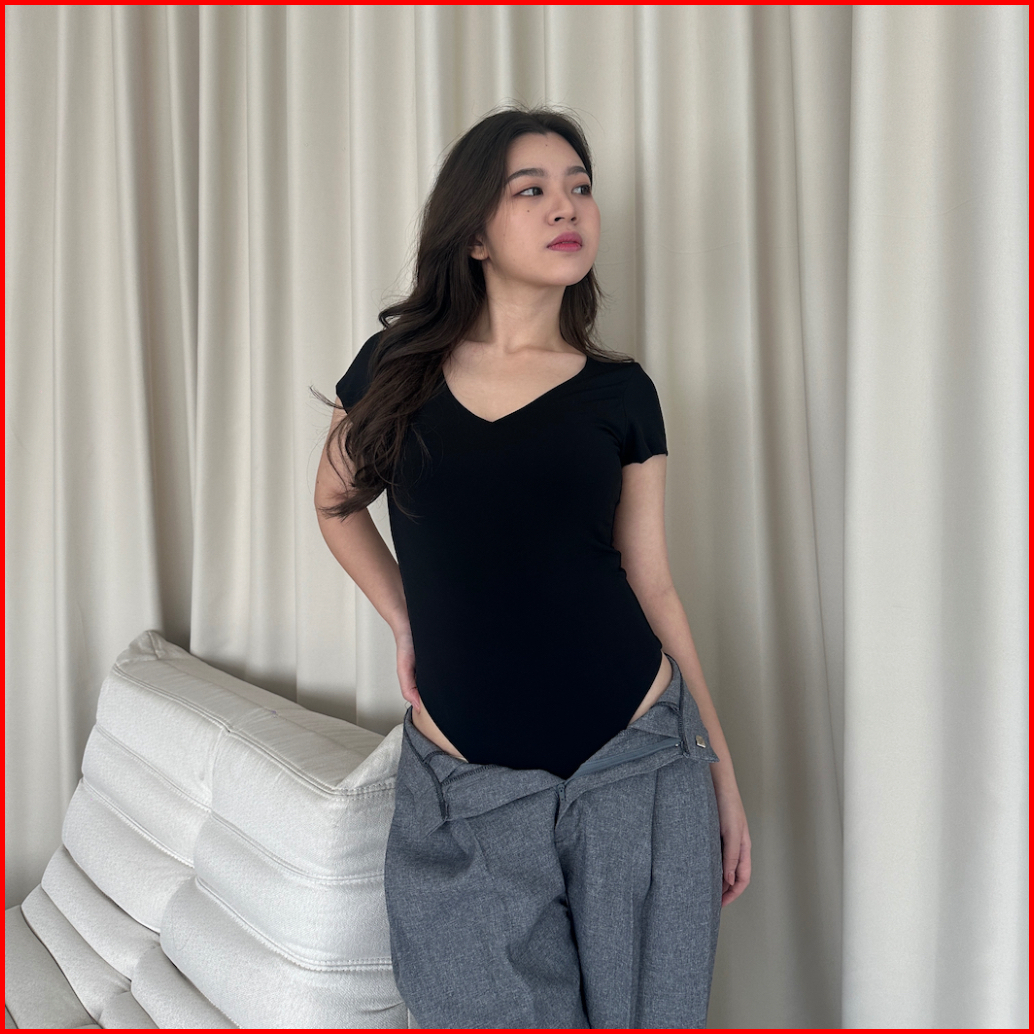 Somethingsweet - Molly Bodysuit Wanita L Atasan Wanita L Bodysuit Basic Lengan Pendek L Leher V Neck Wanita Atasan Polos