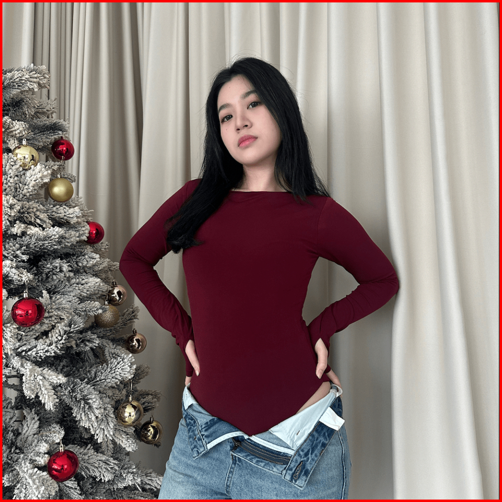 Somethingsweet - Emma Bodysuit Wanita L Atasan Wanita Leher Boatneck L Bodysuit Basic Lengan Panjang L Kaos Spandex Long