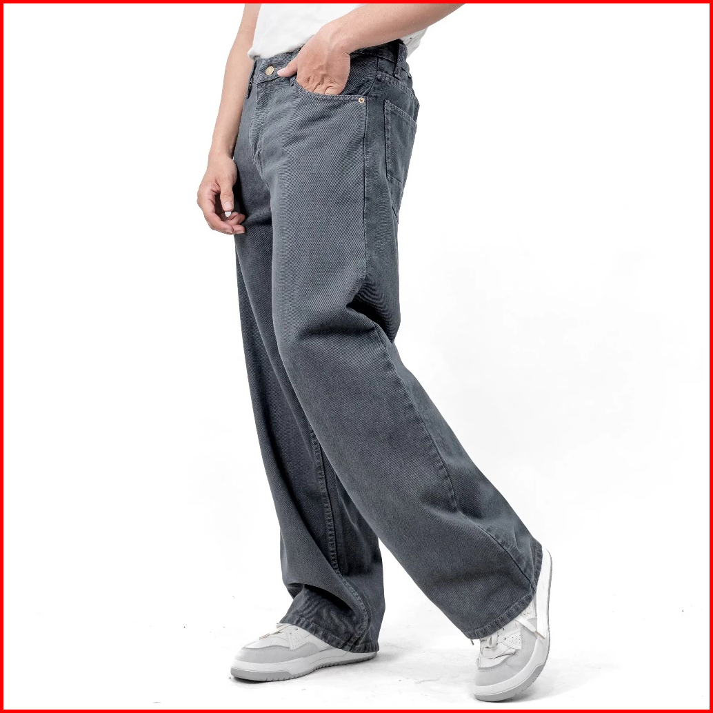 Celana Jeans Pria Black Basic Loose Fit Reguler Gombrong Denim Washed Wide Leg Skena