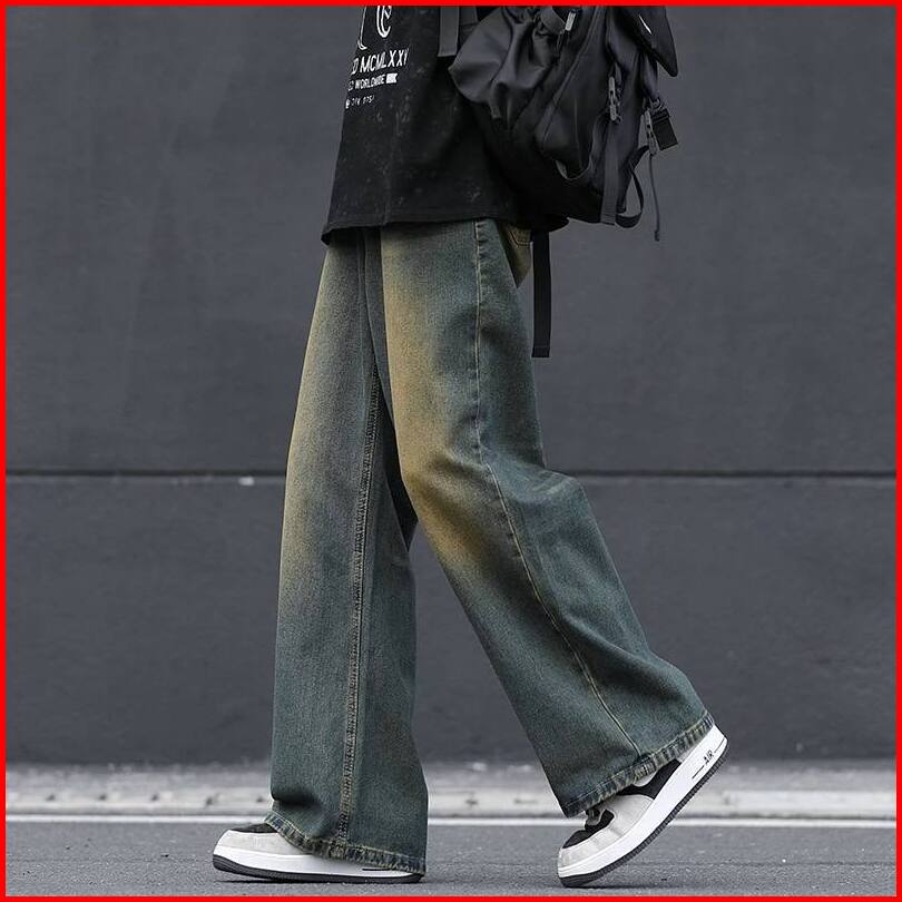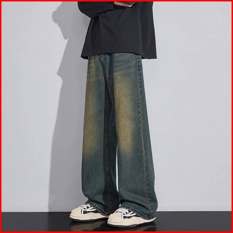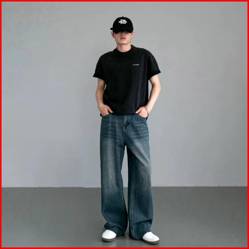 Thirteen Celana Skena Jeans Pria Retro Wide Leg Wisker Lebar Gombrong Skena Biru Rero Black Wisker Pria Loose Fit Jumbo