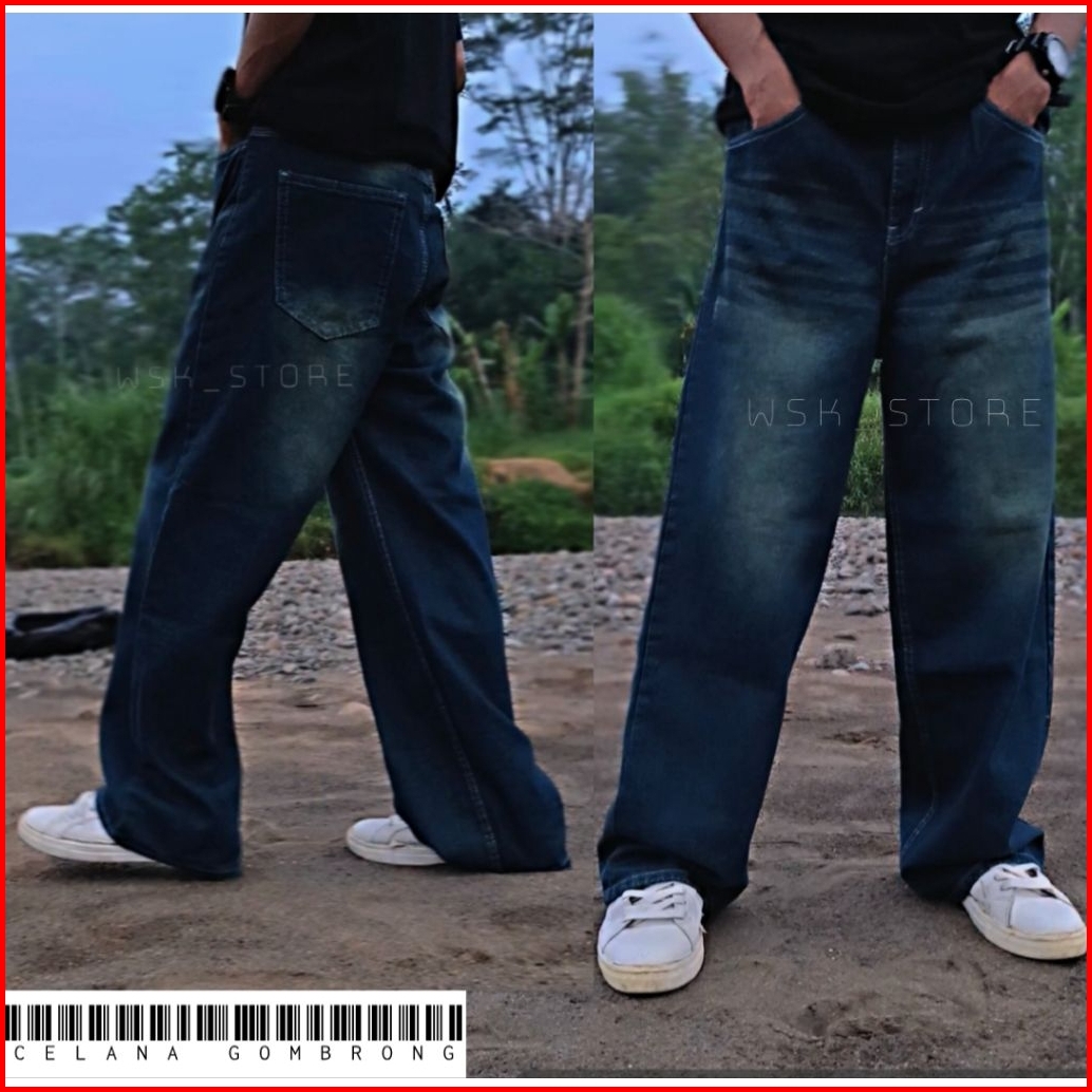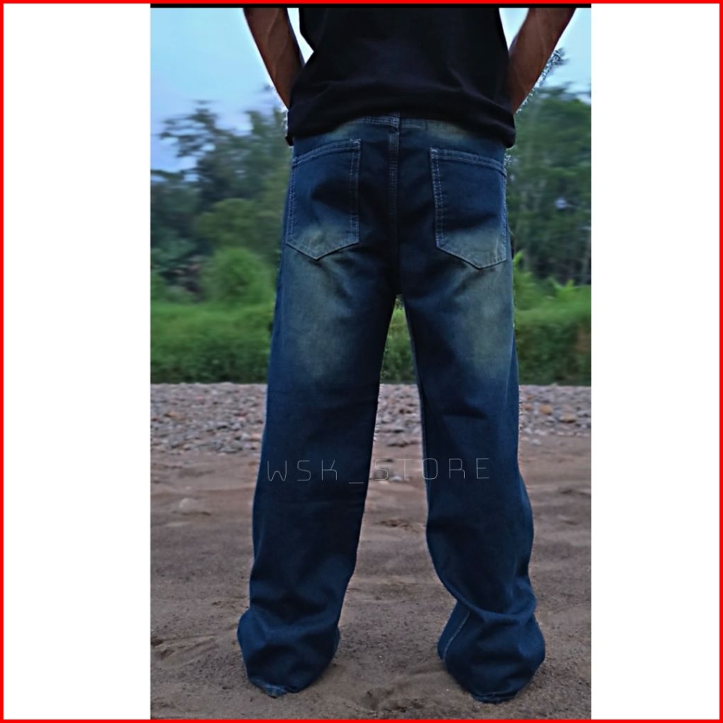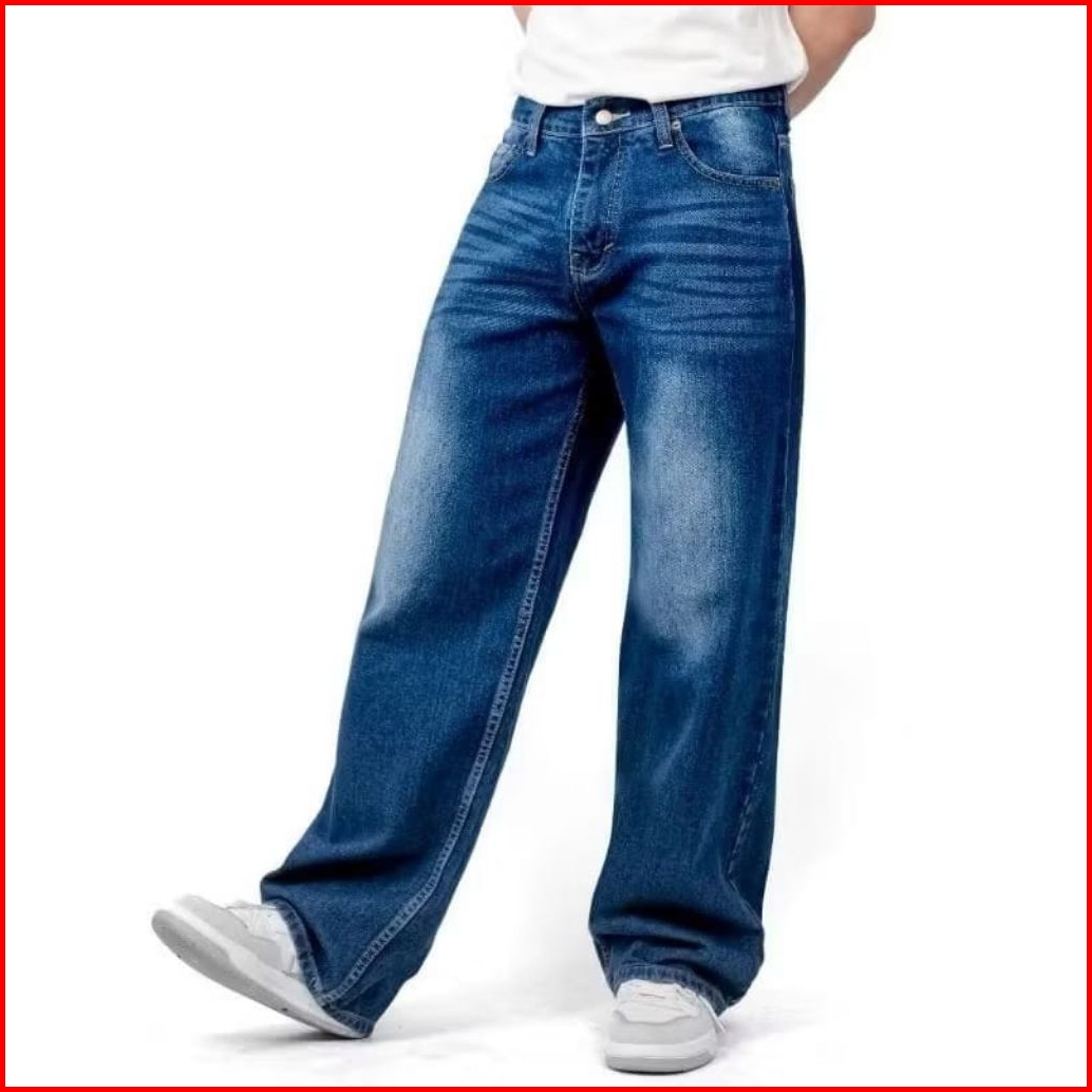 Celana Panjang Pria Washed Loose Fit Pria Standar Reguler Celana Jeans Pria Jeans Gombrong