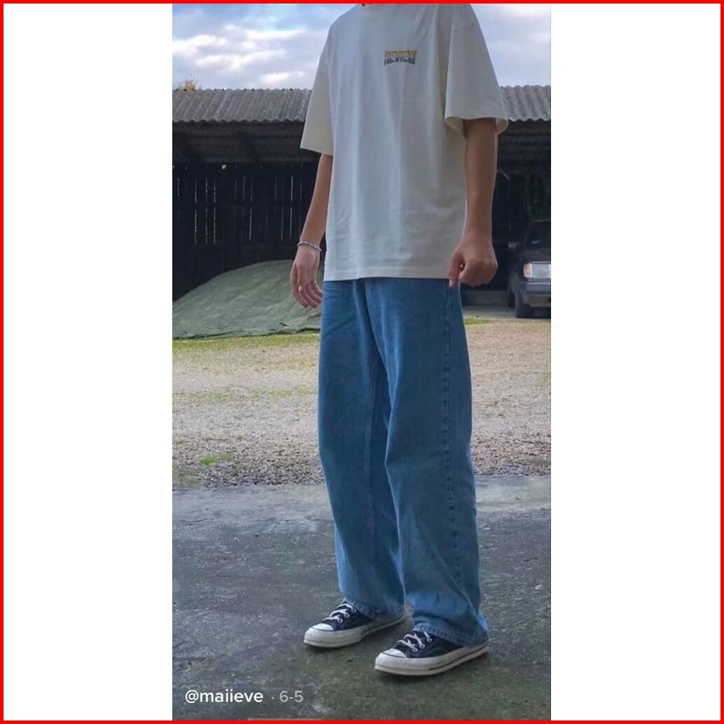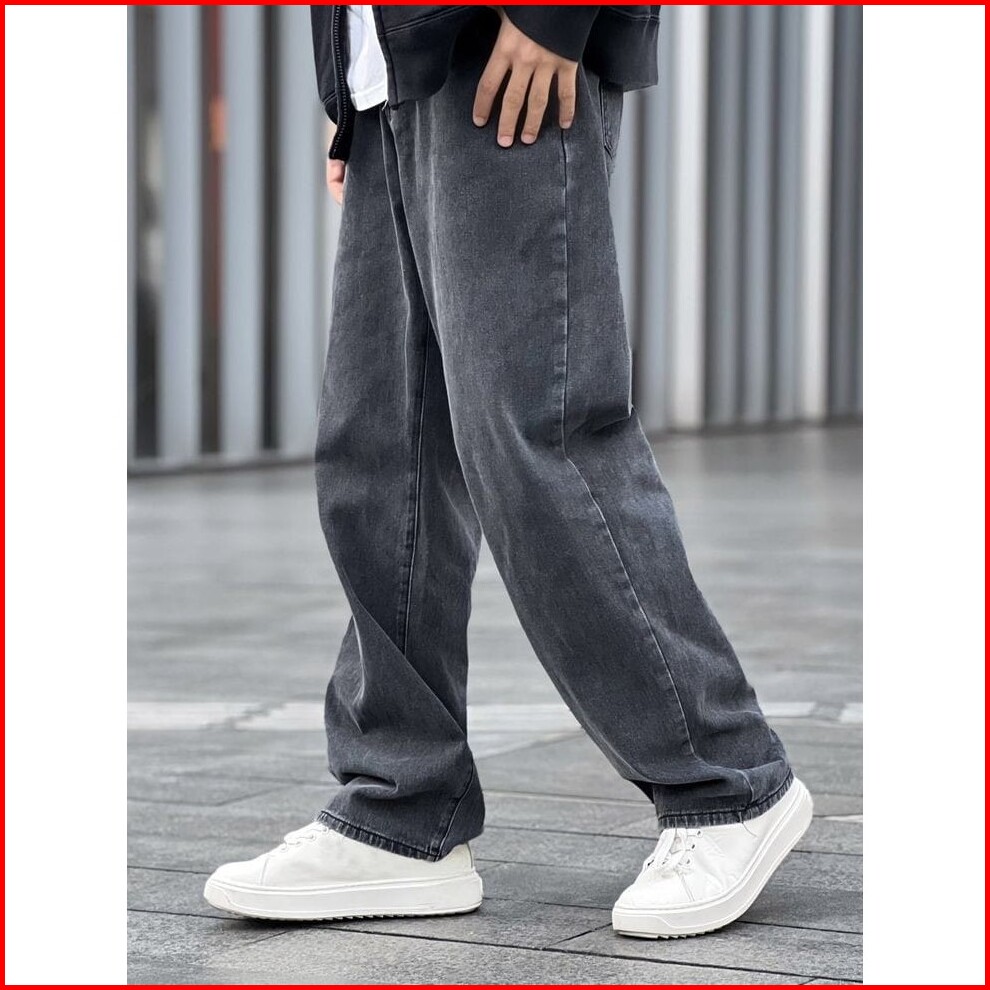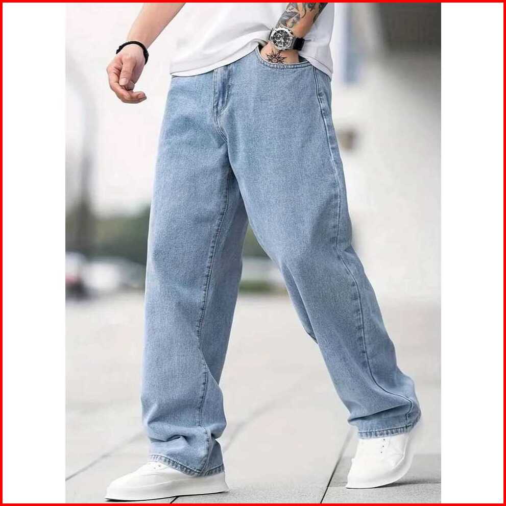 Celana Panjang Jeans Washed Loose Fit Pria Celana Jins Jeans Panjang Standar Reguler Loose Gombrong