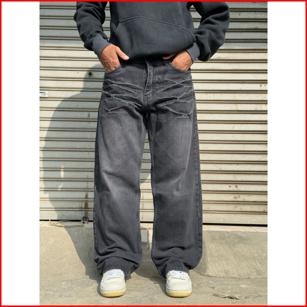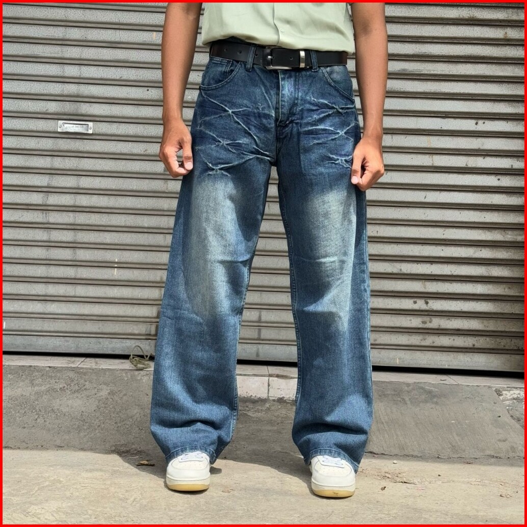 Terlaris..celana Jeans Wide Leg Wisker Lebar Gombrong Skena Retro Scrup Pria Loose Fit Jumbo Big Keren Bahan Denim