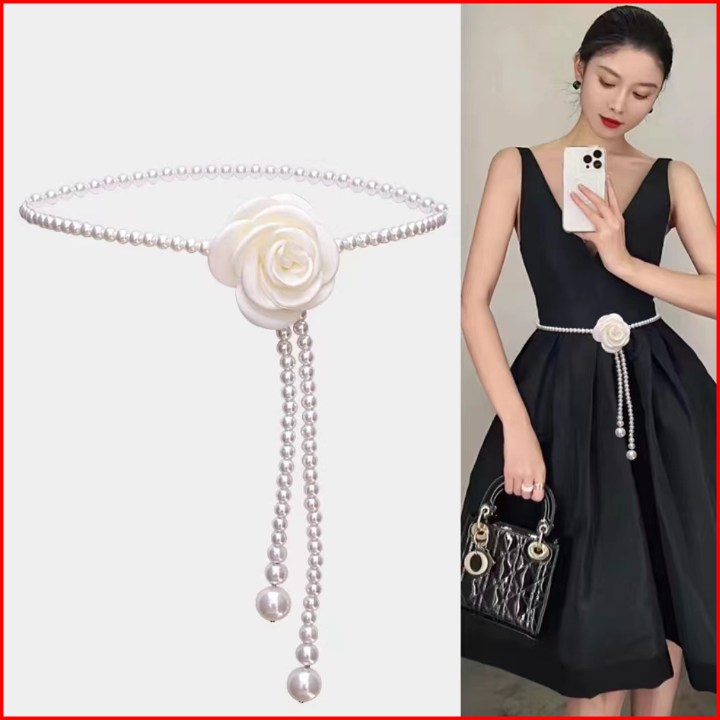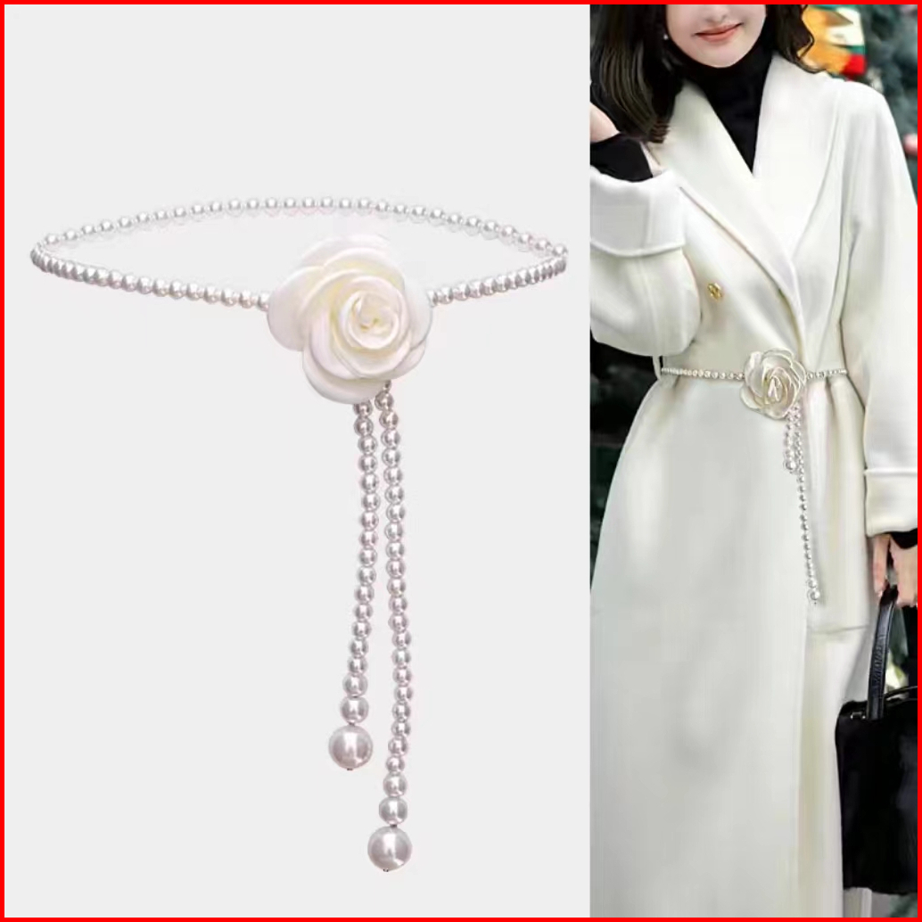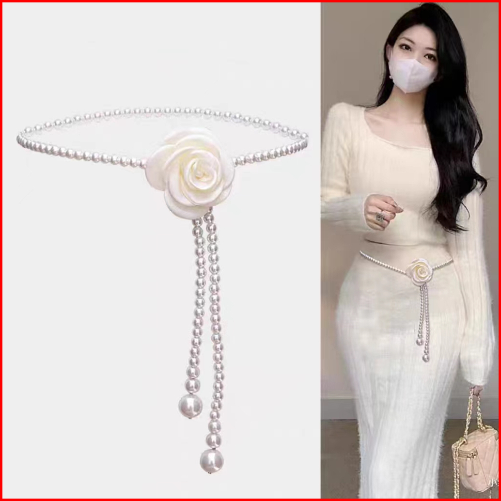 Bgs-436 Ikat Pinggang Wanita Model Bunga Mawar Mutiara Imitasi Fashion Kekinian Trendy