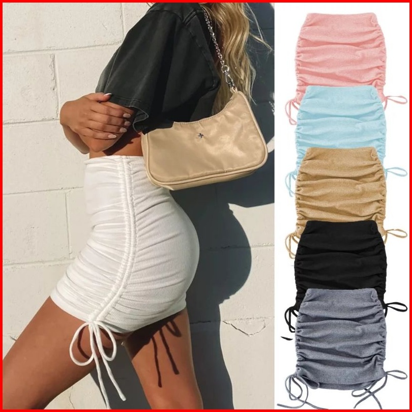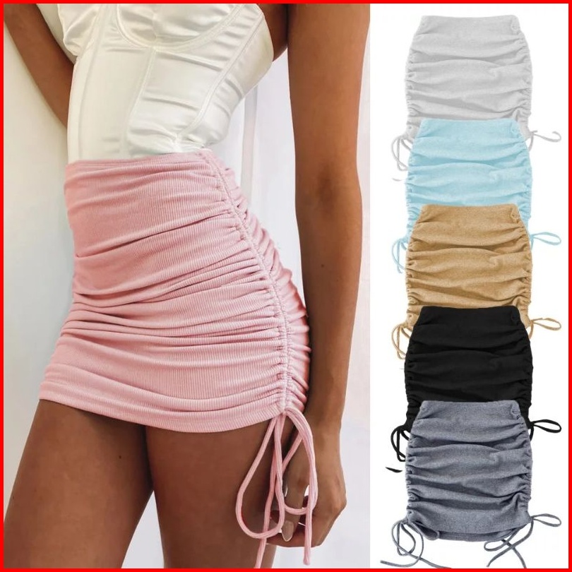 Bawahan Rok Wanita Mini Pendek Serut Bodycon Skirt Premium Rib Pe Melar Streach