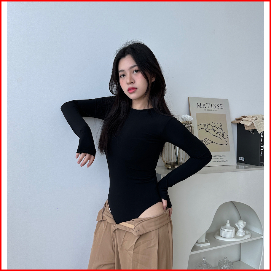 Somethingsweet - Ashley Bodysuit Wanita L Atasan Wanita L Bodysuit Basic Lengan Panjang L Leher Bulat Wanita L Hijab Fri