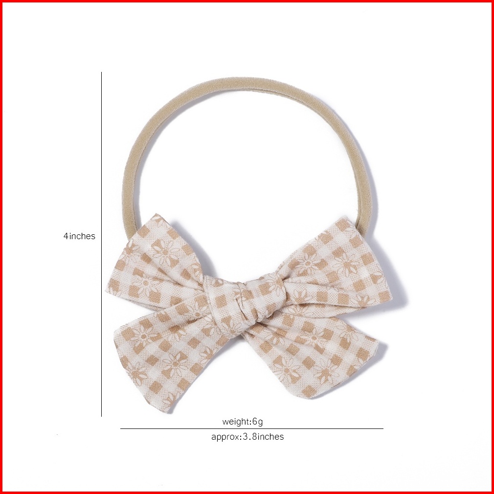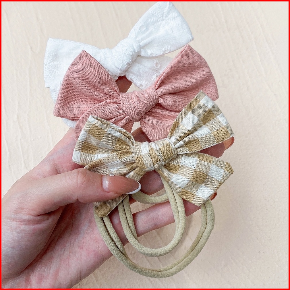 5pcs Set Cotton Linen Busur Warna Padat Untuk Bayi Perempuan Mencetak Bordir Nilon Elastis Hairband Baru Lahir Aksesoris