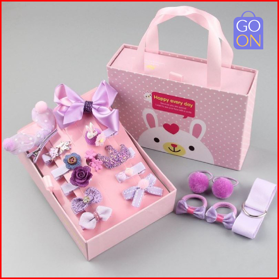 18 Pcs Set Ikat Rambut Anak Wanita - Gift Box Paper Bag - Kunciran - Jepit Rambut - Aksesoris Fashion