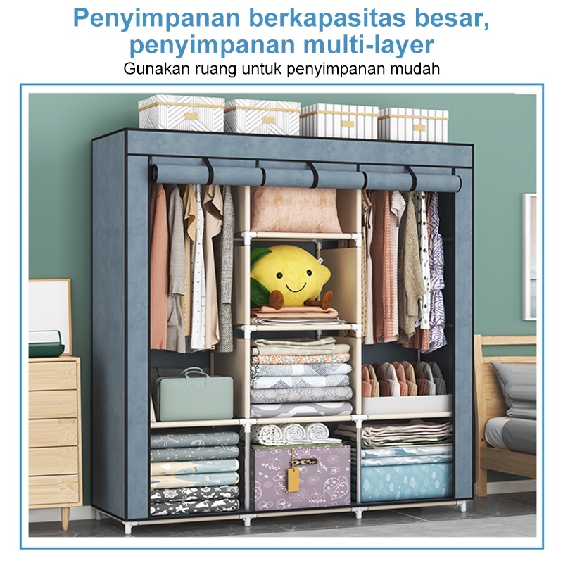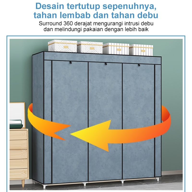 Lemari Pakaian Kain Lemari baju jumbo Lemari 3 Sekat resleting Portable
