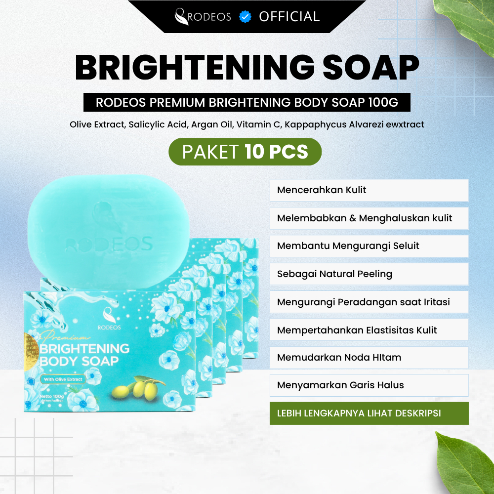 10 PCS Rodeos Premium Brightening Body Soap 100gr Sabun Pemutih Kulit & Pencerah Badan | Mencerahkan 7X, Flek Hitam, Kul