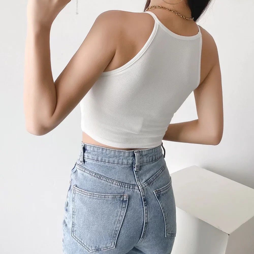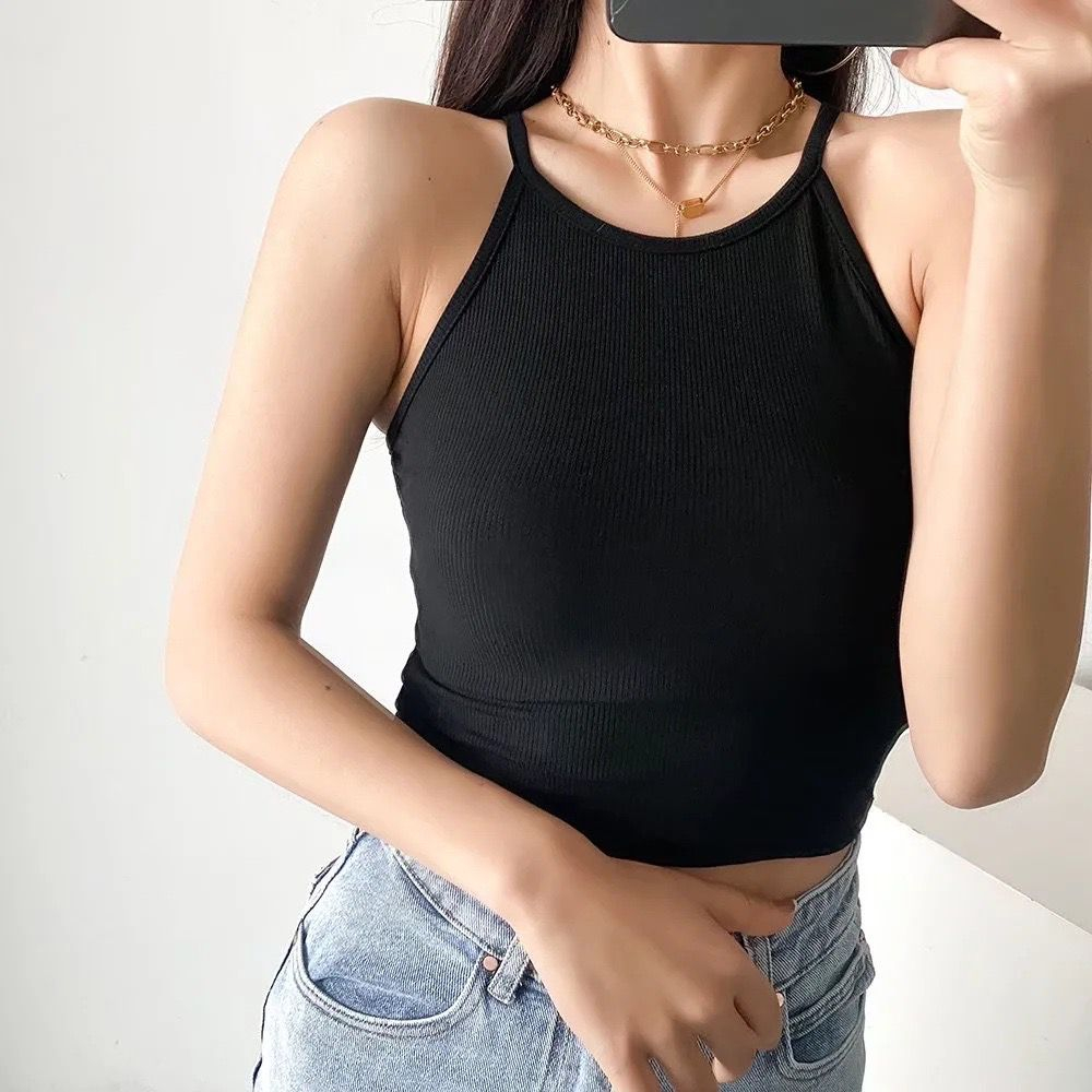 Tank Top Tali /Tangtop Oneck Knit Rib Crop Wanita / Singlet Tanktop Polos Style Korea Murah Gratis Ongkir