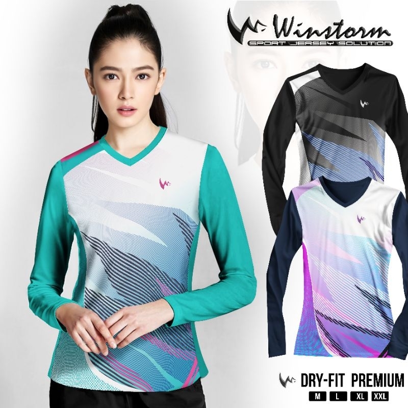 Winstorm Lengan Panjang Baju Olahraga Cewe Premium Dewasa Jersey Badminton Wanita Koas Voli Print