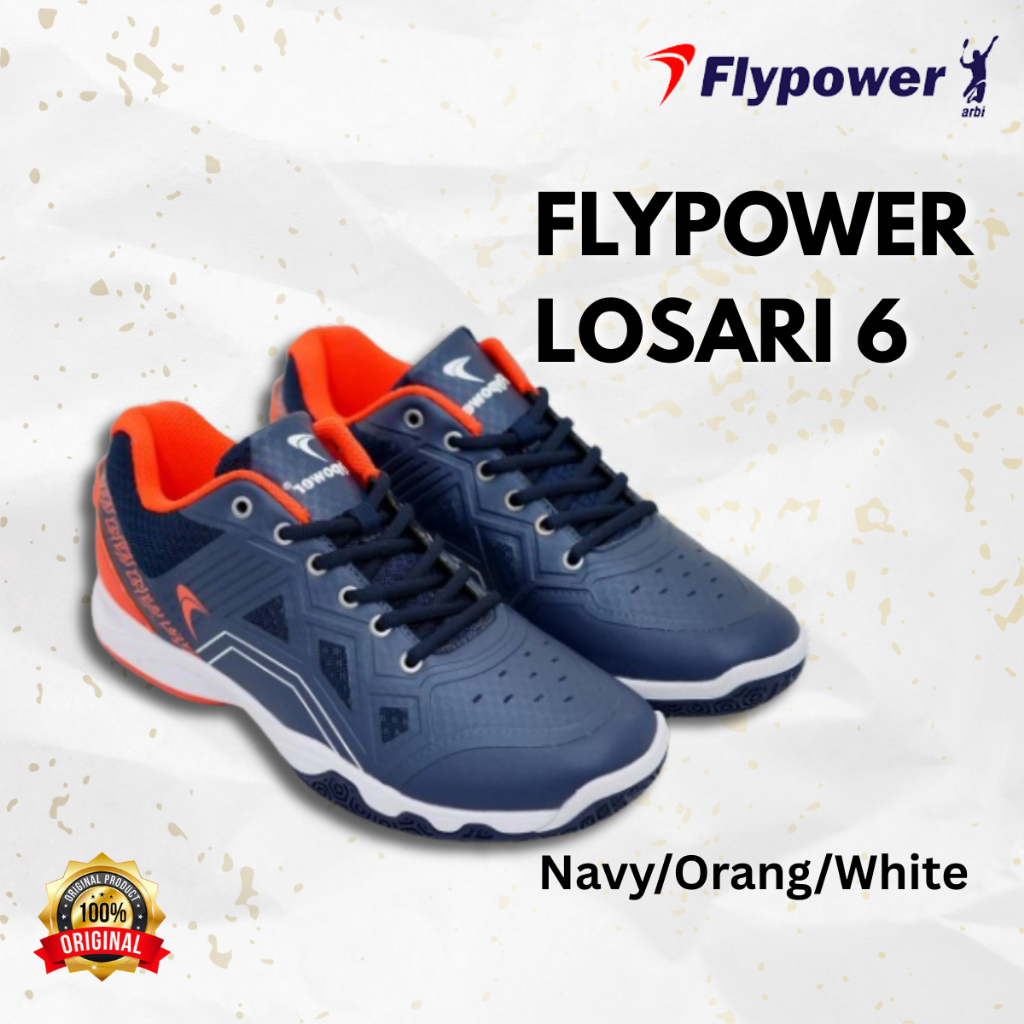 Flypower Losari 06 Sepatu Badminton Pria Wanita Navy Hot Orange White ORIGINAL