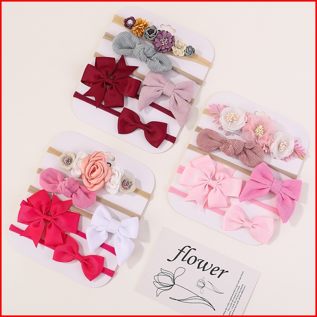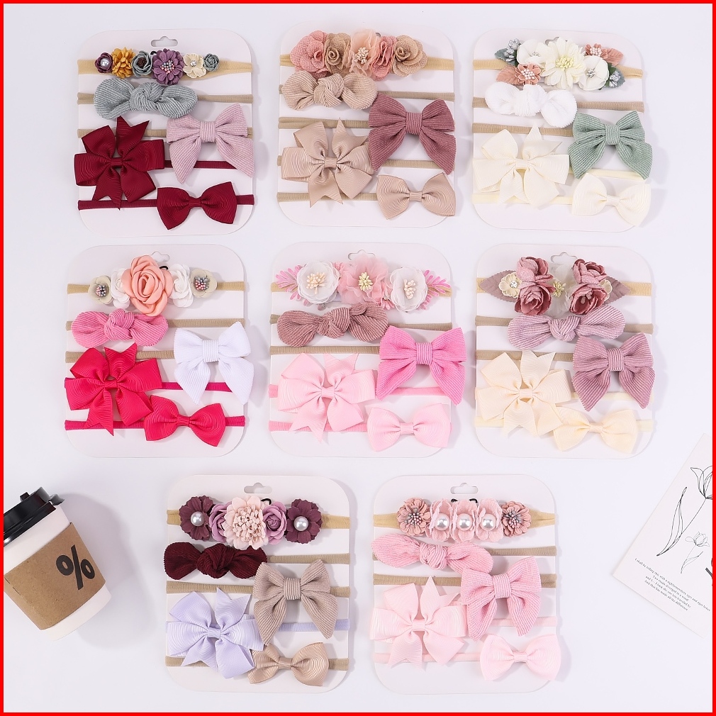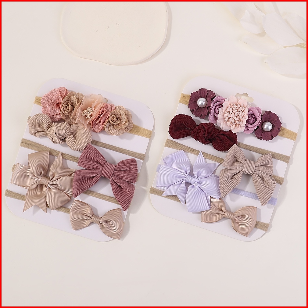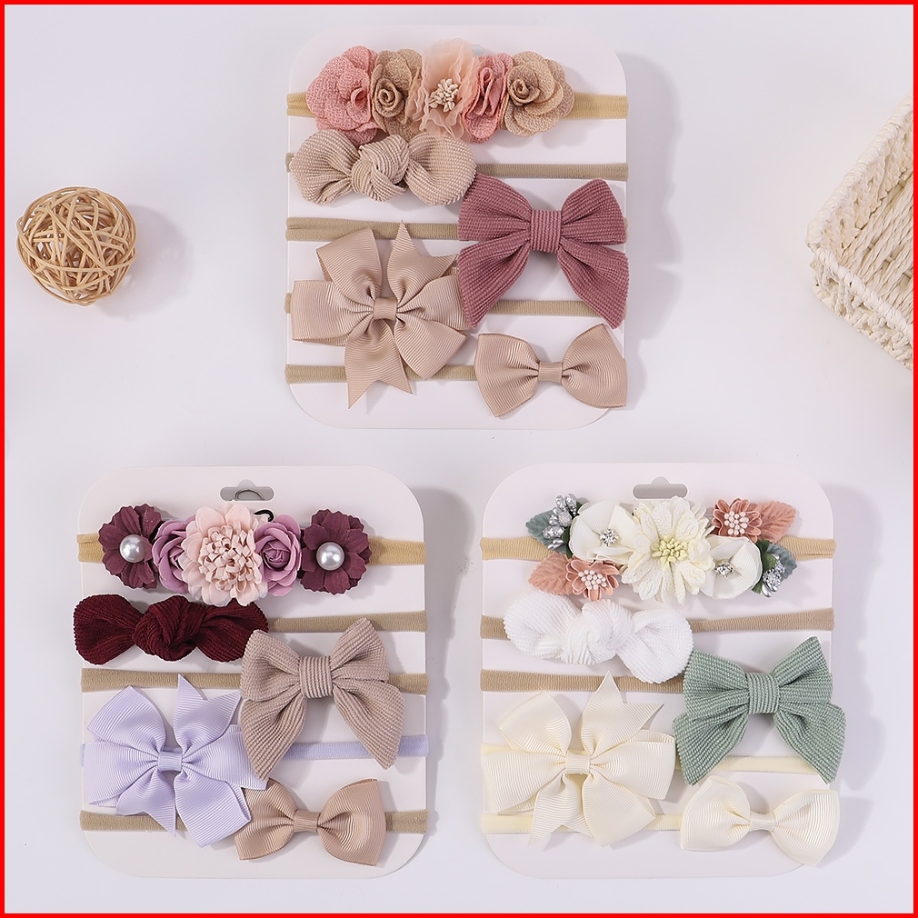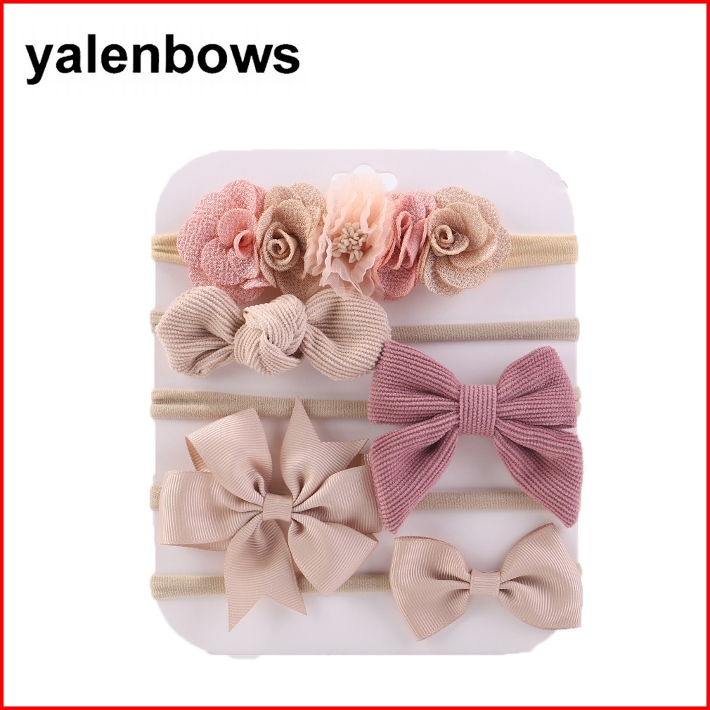 5pcs Set Newborn Handmade Solid Color Cotton Headband Girls Bow Bow Bow Elastic Nylon Hair Bands Hadiah Rambut Hadiah