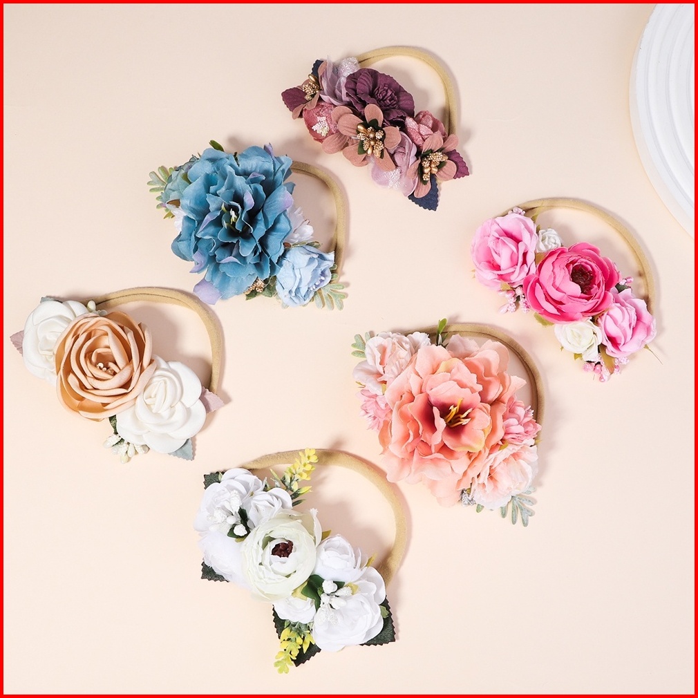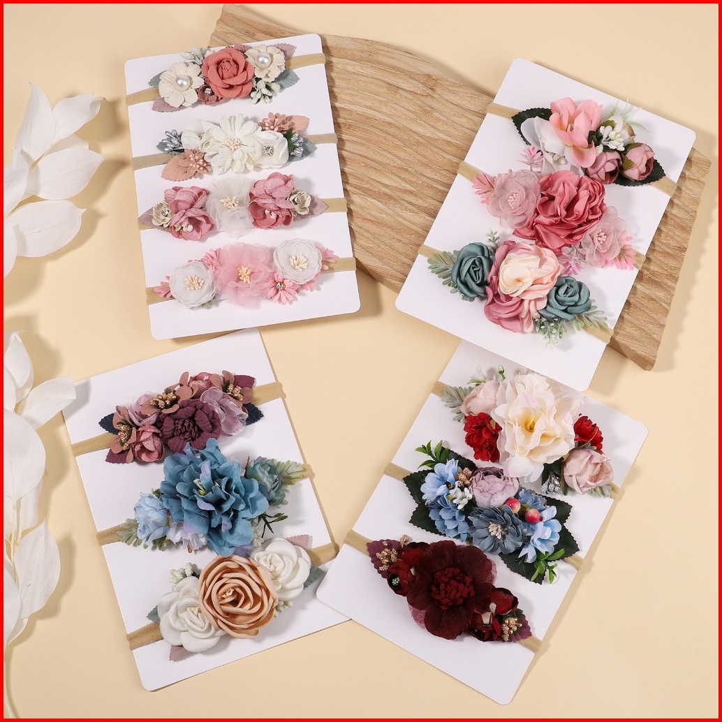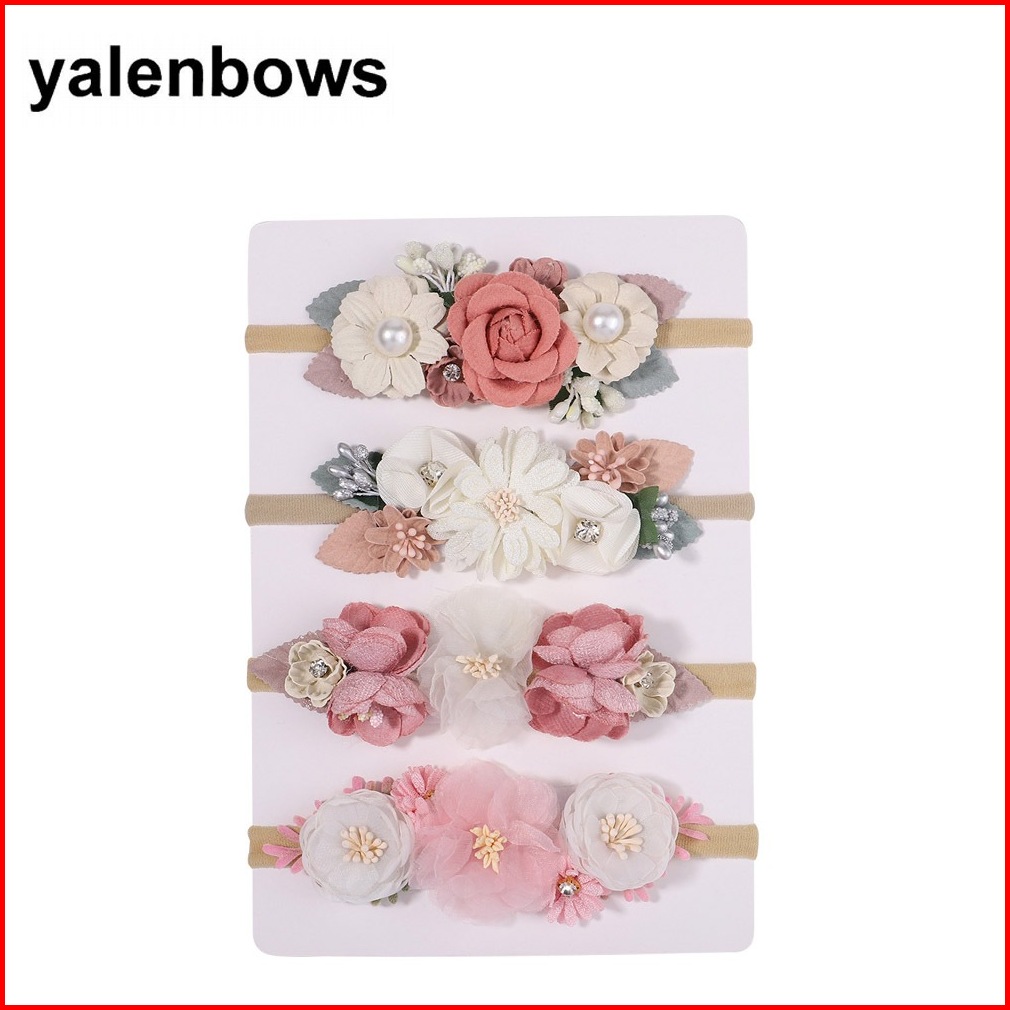 3 4pcs Set Cute Artificial Flower Baby Elastic Headband Newborn Nylon Hair Bands Toddler Kids Hairbands Headwear Gift
