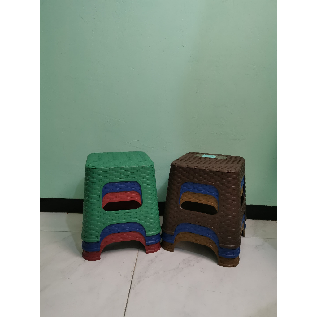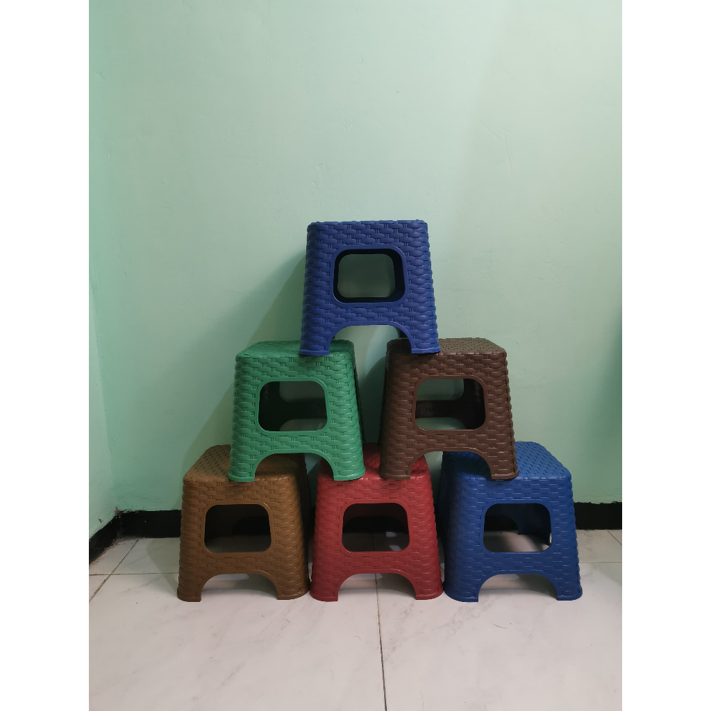 Furniplas - (Paket hemat Isi 6/12) Kursi Bakso Plastik Teras Bangku Jongkok Kecil Pendek Premium Plastic Warna Motif Rotan Ukuran 28 x 28 x 26 cm - Mascot 21