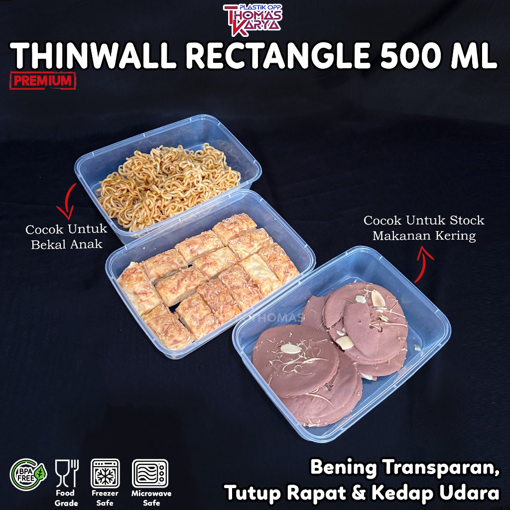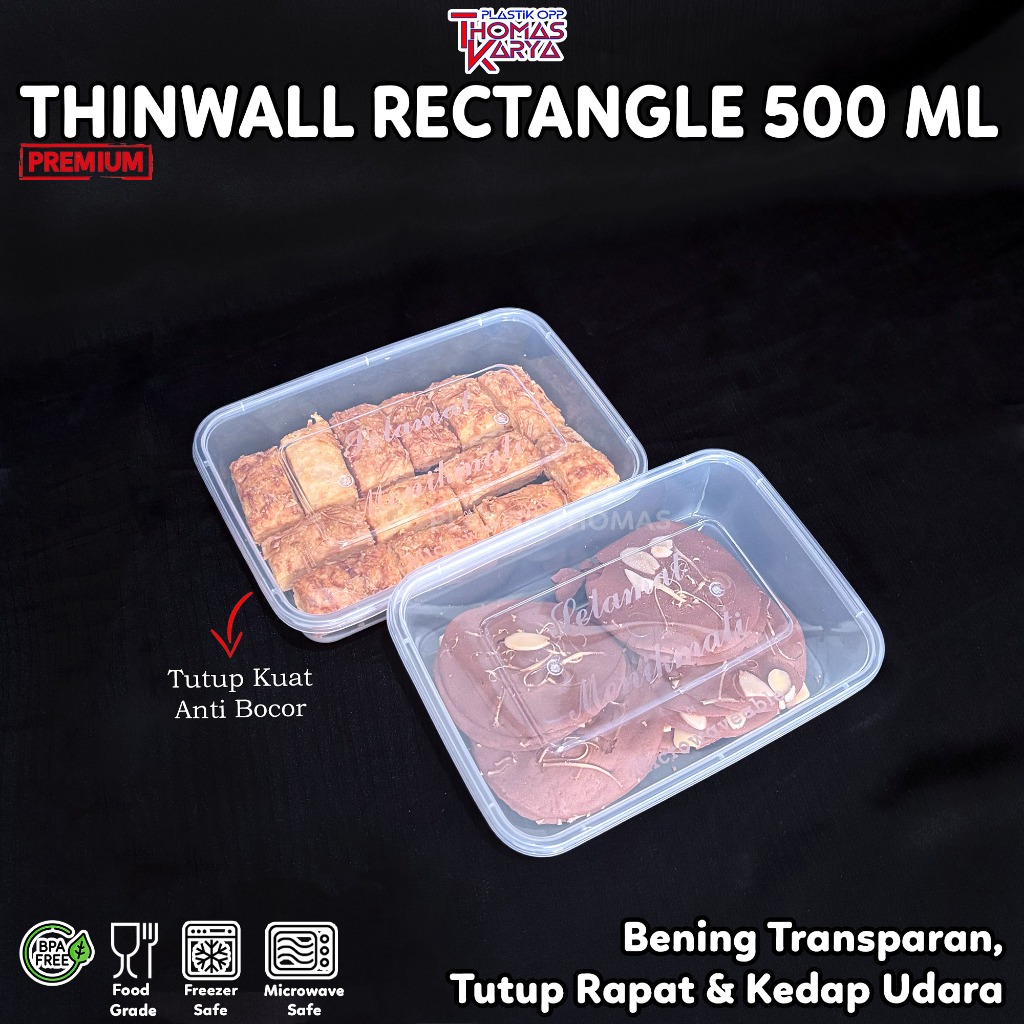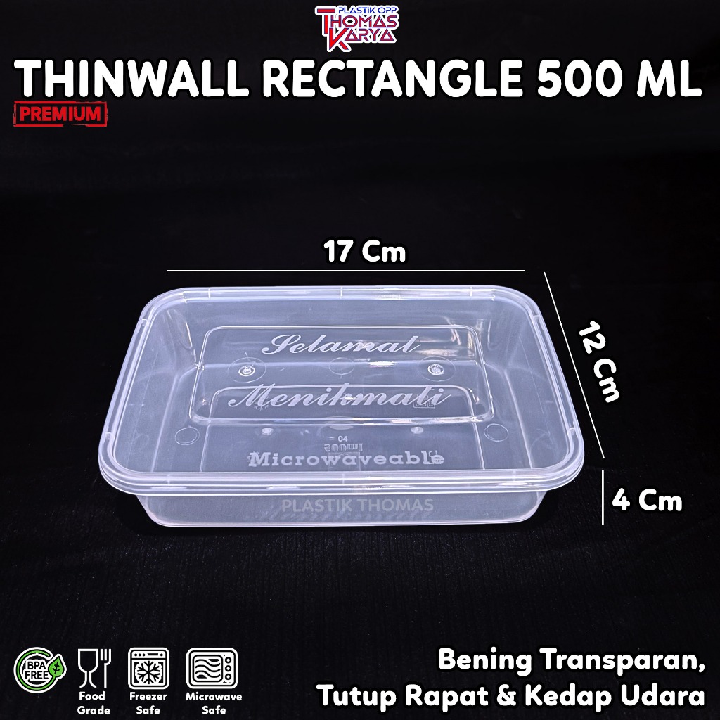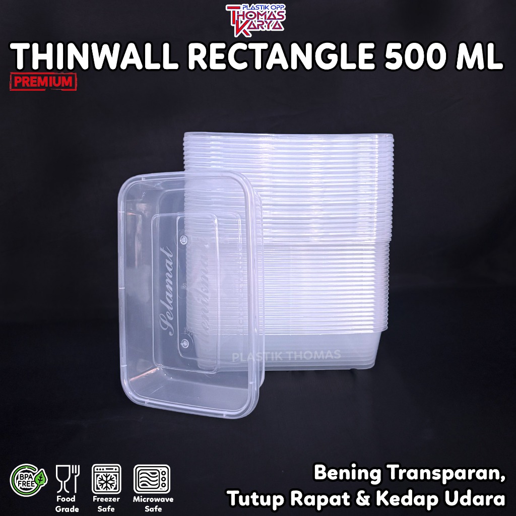 ECER Thinwall 500ml Persegi Panjang Plastik Food Grade Container Rectangle Kotak Makan Bening PP