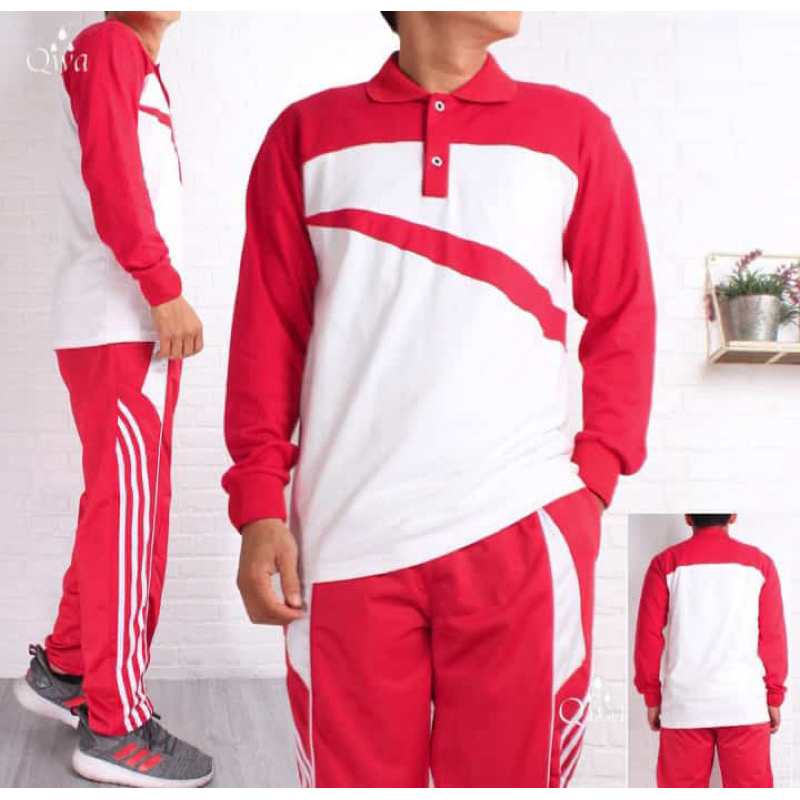 Stelan Baju Olahraga Merah Putih Pria dan Wanita Stelan Baju Senam Merah Putih Pria dan wanita (Stelan Baju Olahraga Mer