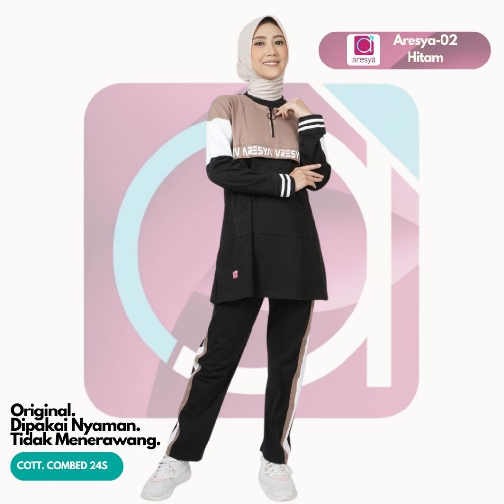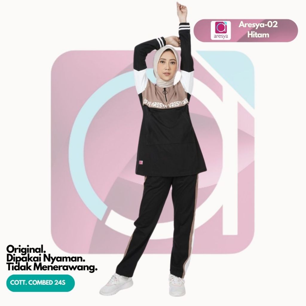 ARESYA - Setelan Baju Olahraga Couple Pria Wanita Muslim Aresya-02 Hitam
