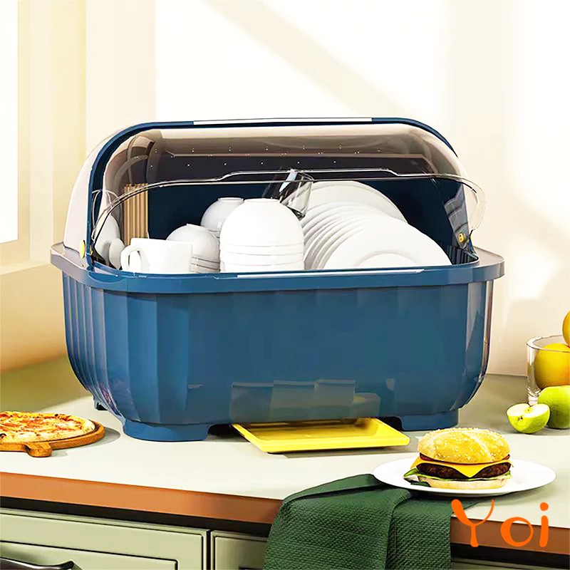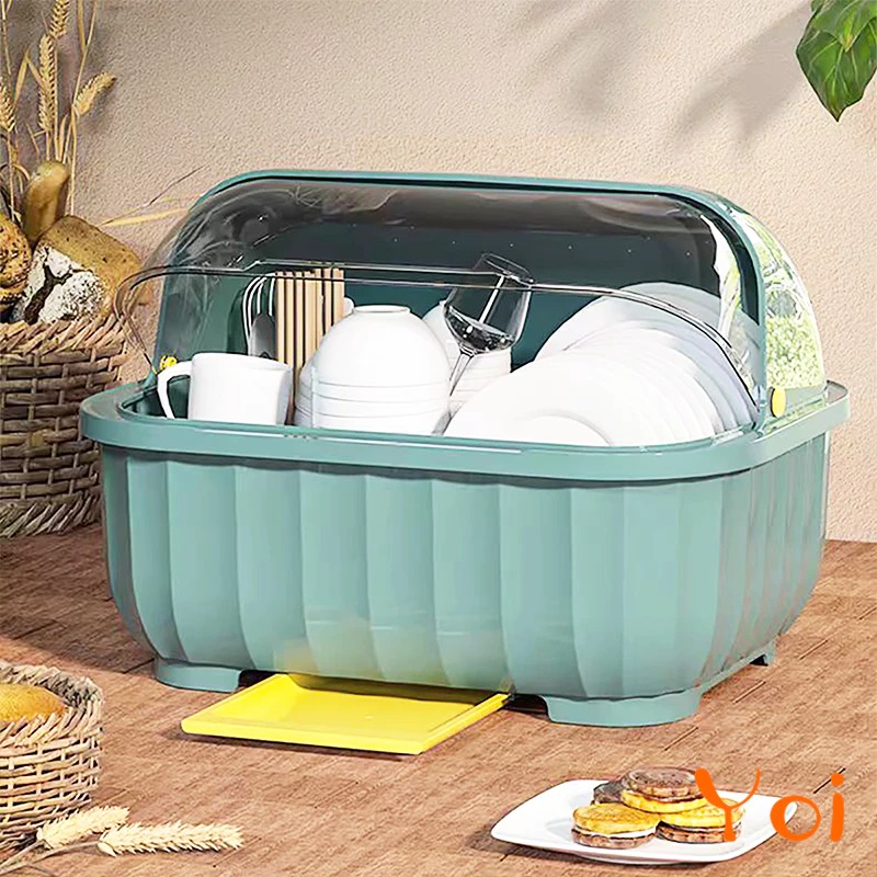 Rak Pengering Mangkok Air / Rak Piring Plastik Dengan Tutup / Tempat Alat Makan Mangkok Sendok / Sendok Rak Dapur