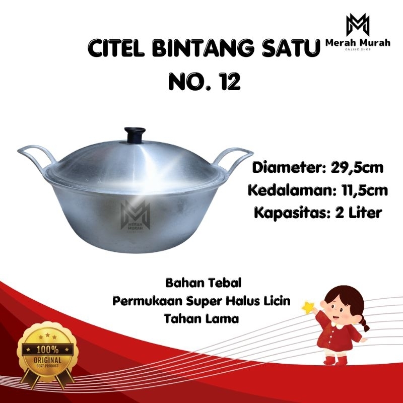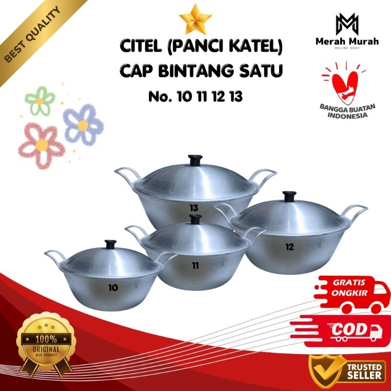 Panci Katel Citel bintang no. 10 11 12 13 katel satu alumunium tutup tebal