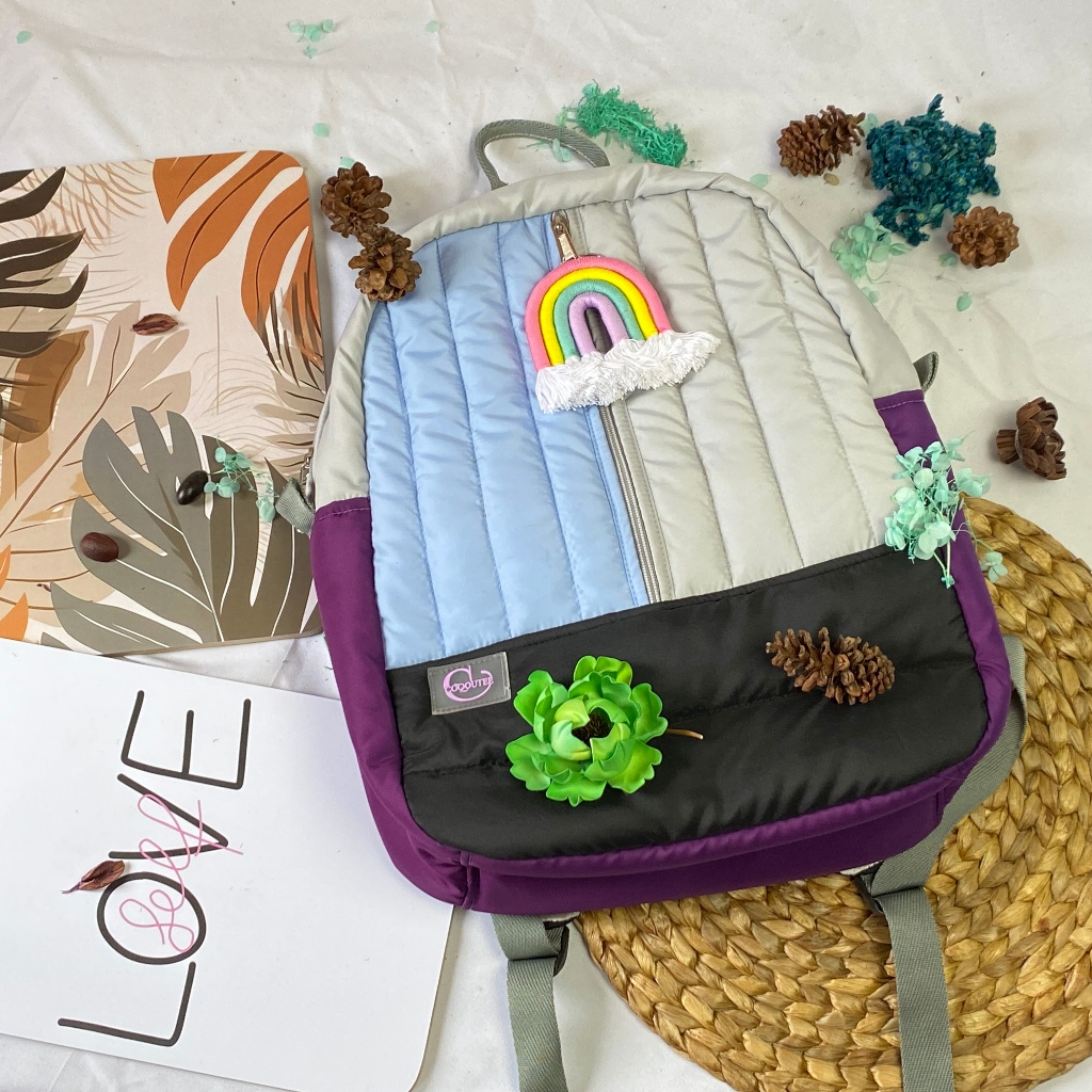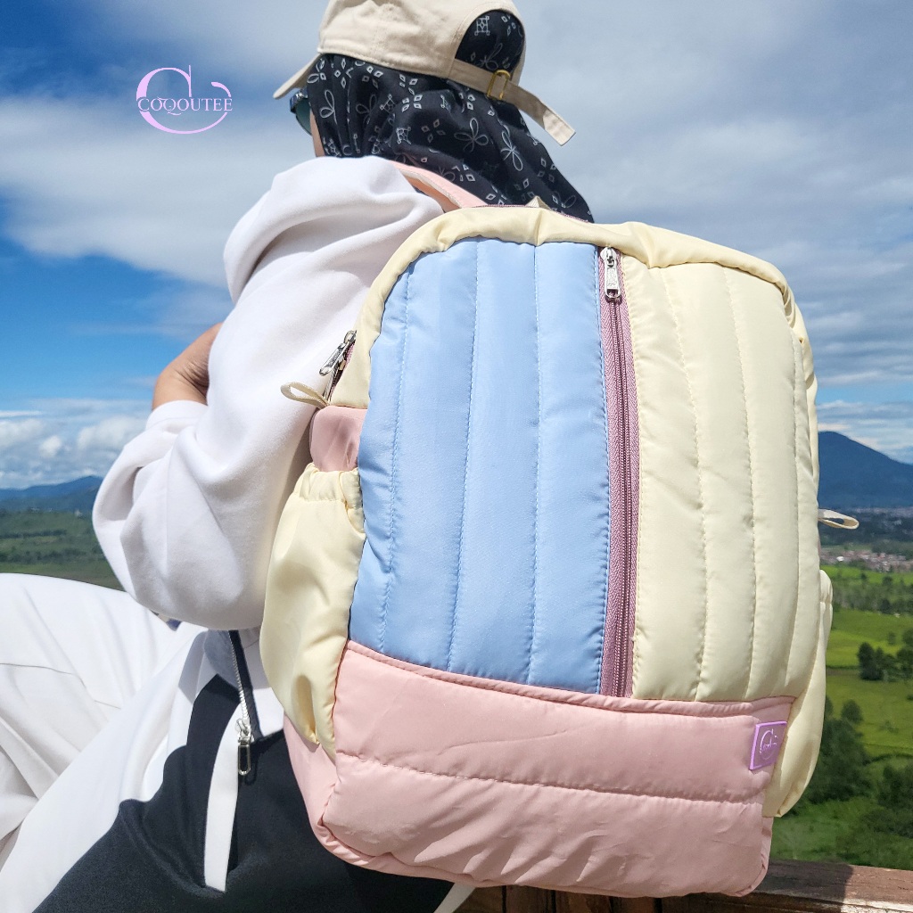 Coqoutee Deizi Tas Ransel Puffy Garis-Garis Polyester