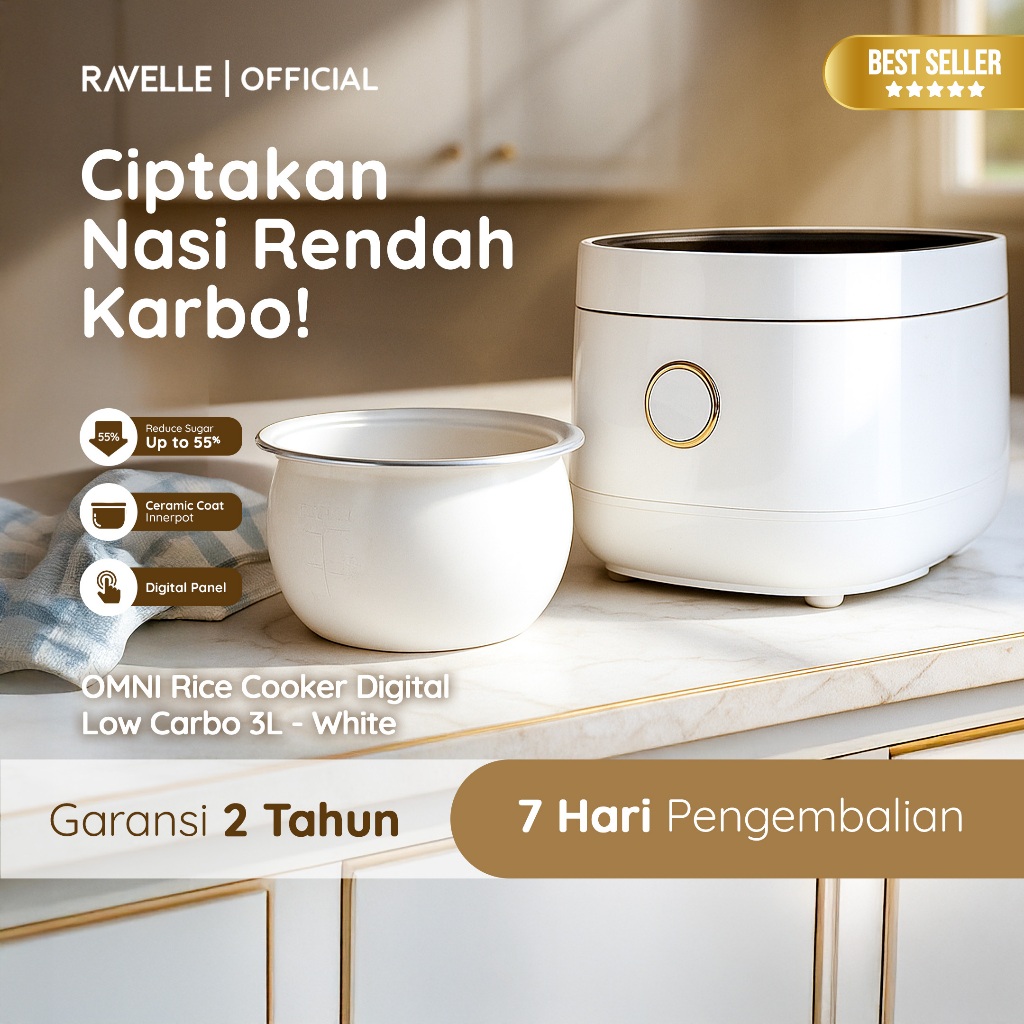 [Star]RAVELLE OMNI Rice Cooker Digital Low Carbo Less Sugar 1.2 Liter Nasi (3 Liter) Stainless Steel inner Pot - Pen