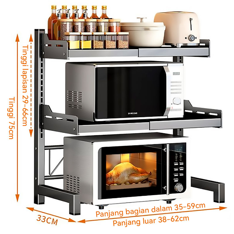 [Star]Rak Microwave Rak Serbaa Rak Bumbu Dapur Portable Rak Panci Rak Oven Rak Besi Tempat Penyimpanan - itr06