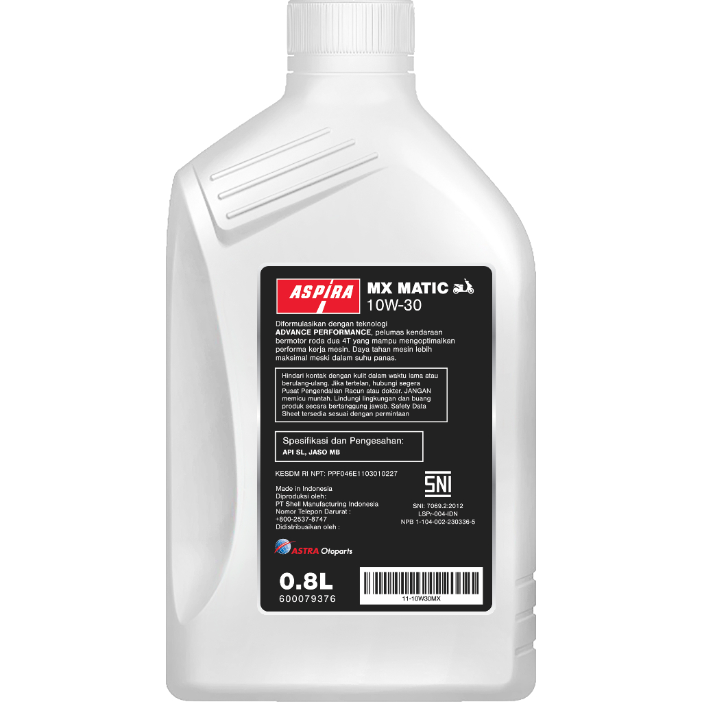 Oli Motor Matic Bebek 800ml Aspira 10W-30 Original Lengkap | Yamaha Nmax Beat 1Liter Federal Enduro Shell Yamalube Mpx2