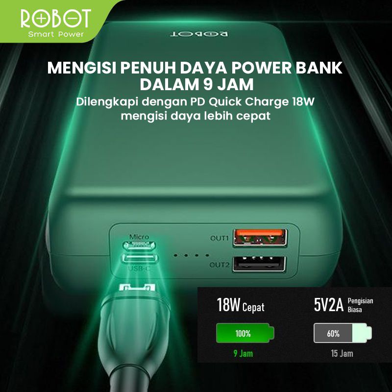 Powerbank Robot 30000Mah Rt31//Rt32 2,4A Dual Input Port Type C & Micro Usb