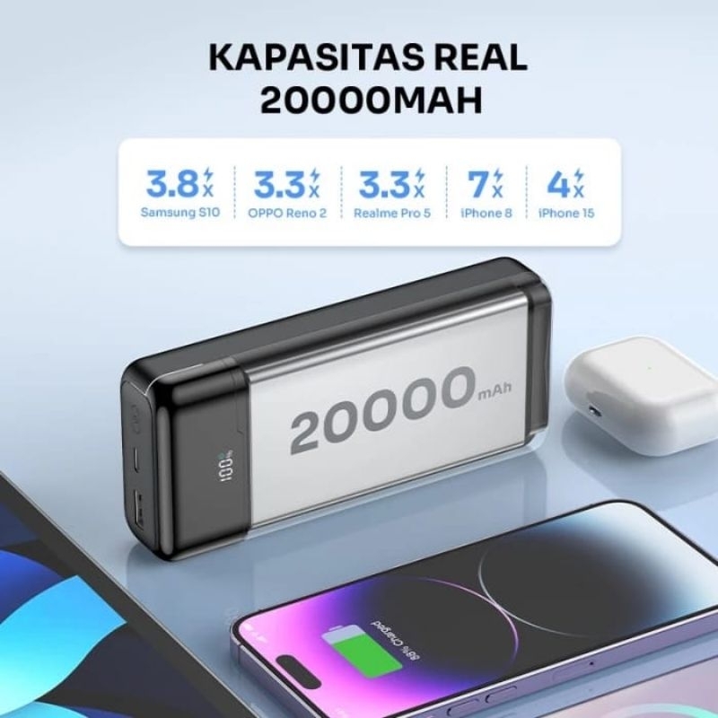 Robot Rt25 Power Bank 20000Mah Fast Charging 22.5W Kabel Charger Type C Lightning Iphone