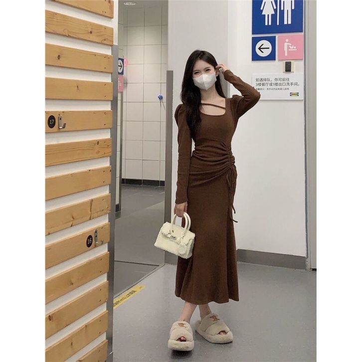First Girl-Gaun Wanita Basic Knit Slim Long Sleeve dress bodycon baju dress wanita- G009