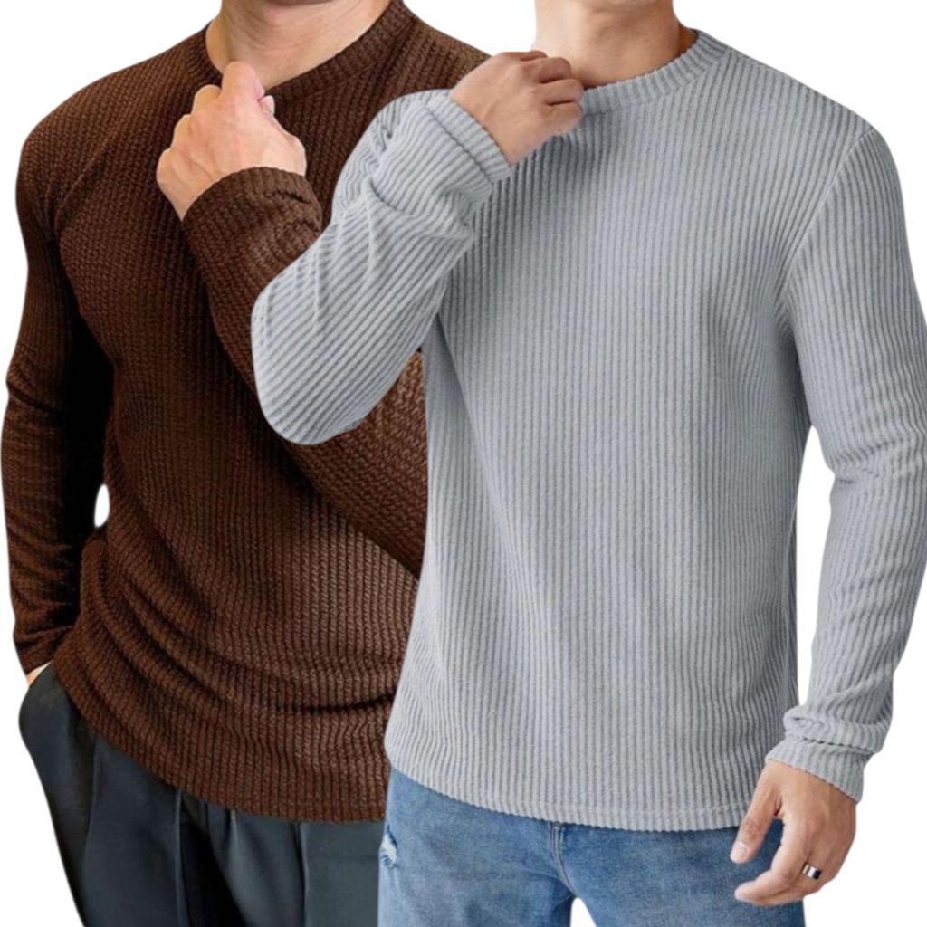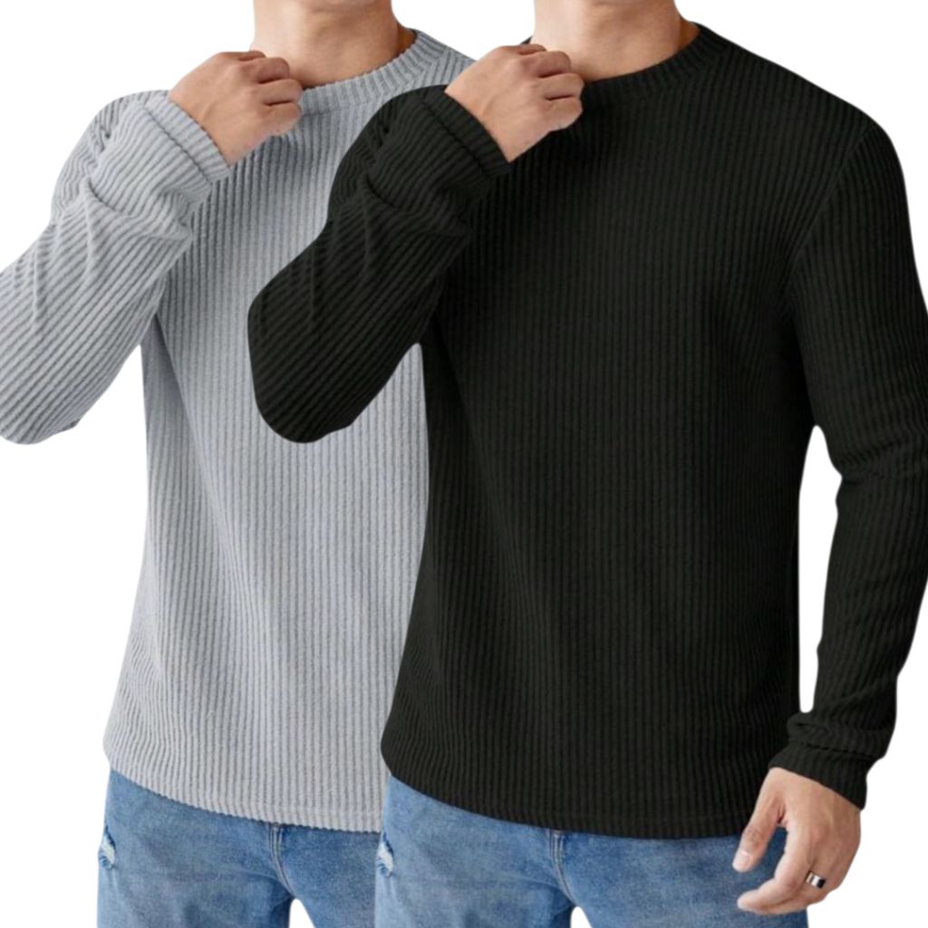 Paket 2 Pcs Kaos Waffle Knit Polos Lengan Panjang Pria