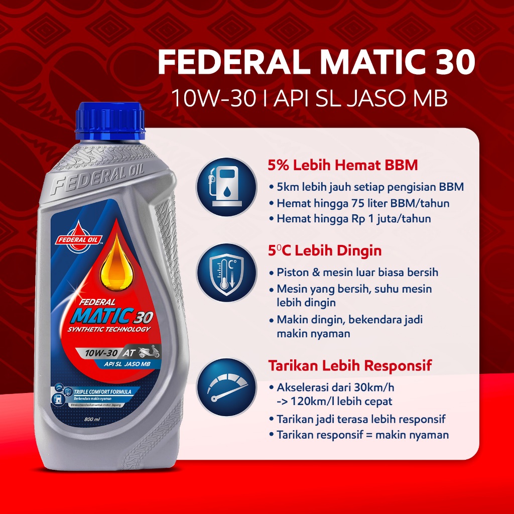 Oli Motor Matic Bebek 800ml FEDERAL 10W-40 Original Lengkap | Yamaha Nmax Beat 1Liter Federal Enduro Shell Yamalube Mpx2