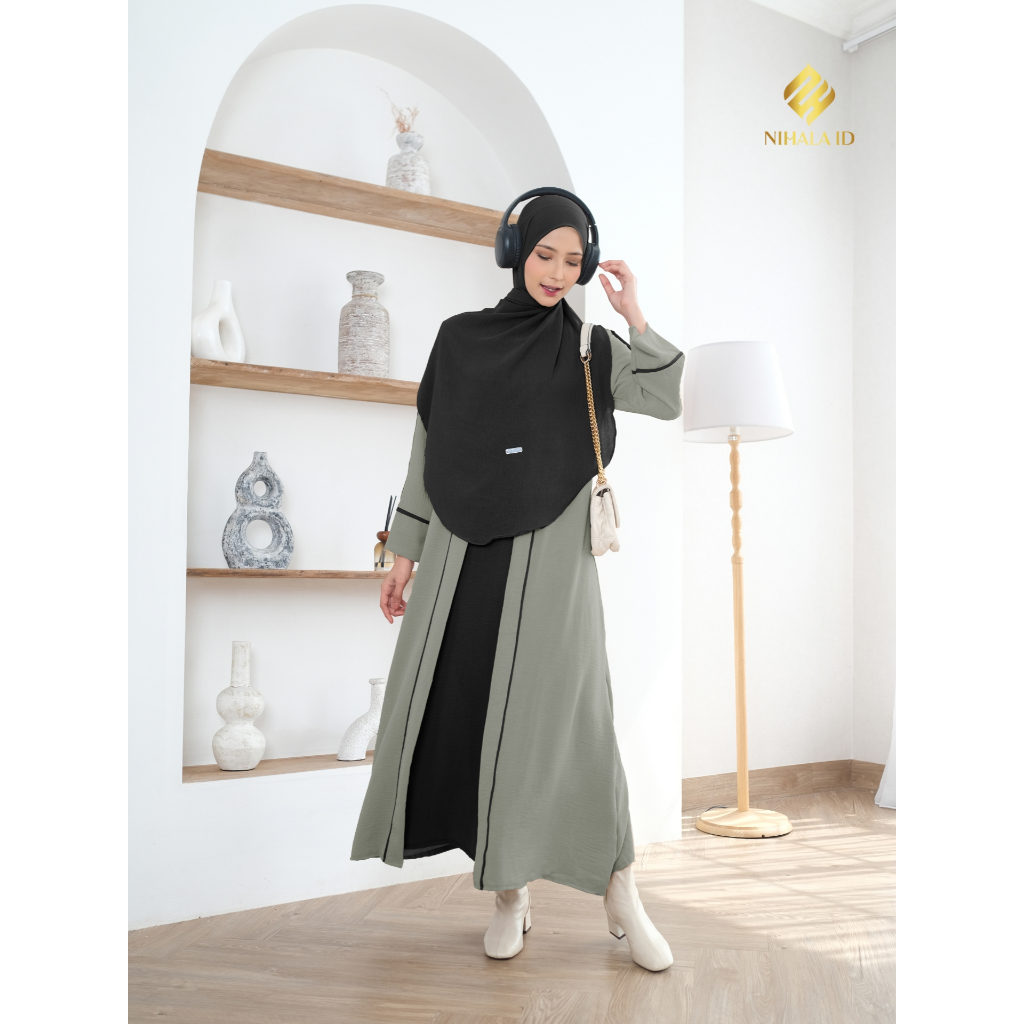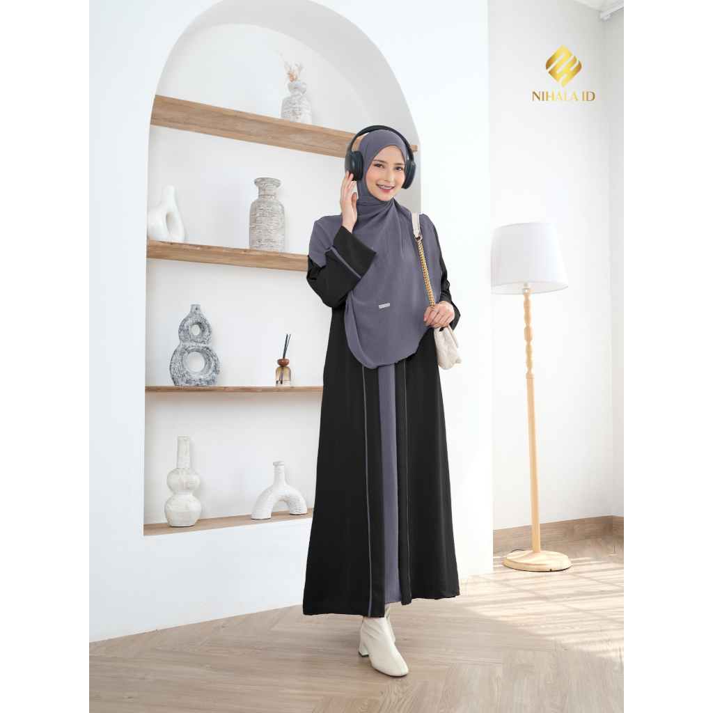 Gamis Abaya Turkey Kombinasi Set Pasmina Oval Bahan Crinkle Airflow S M L XL XXL