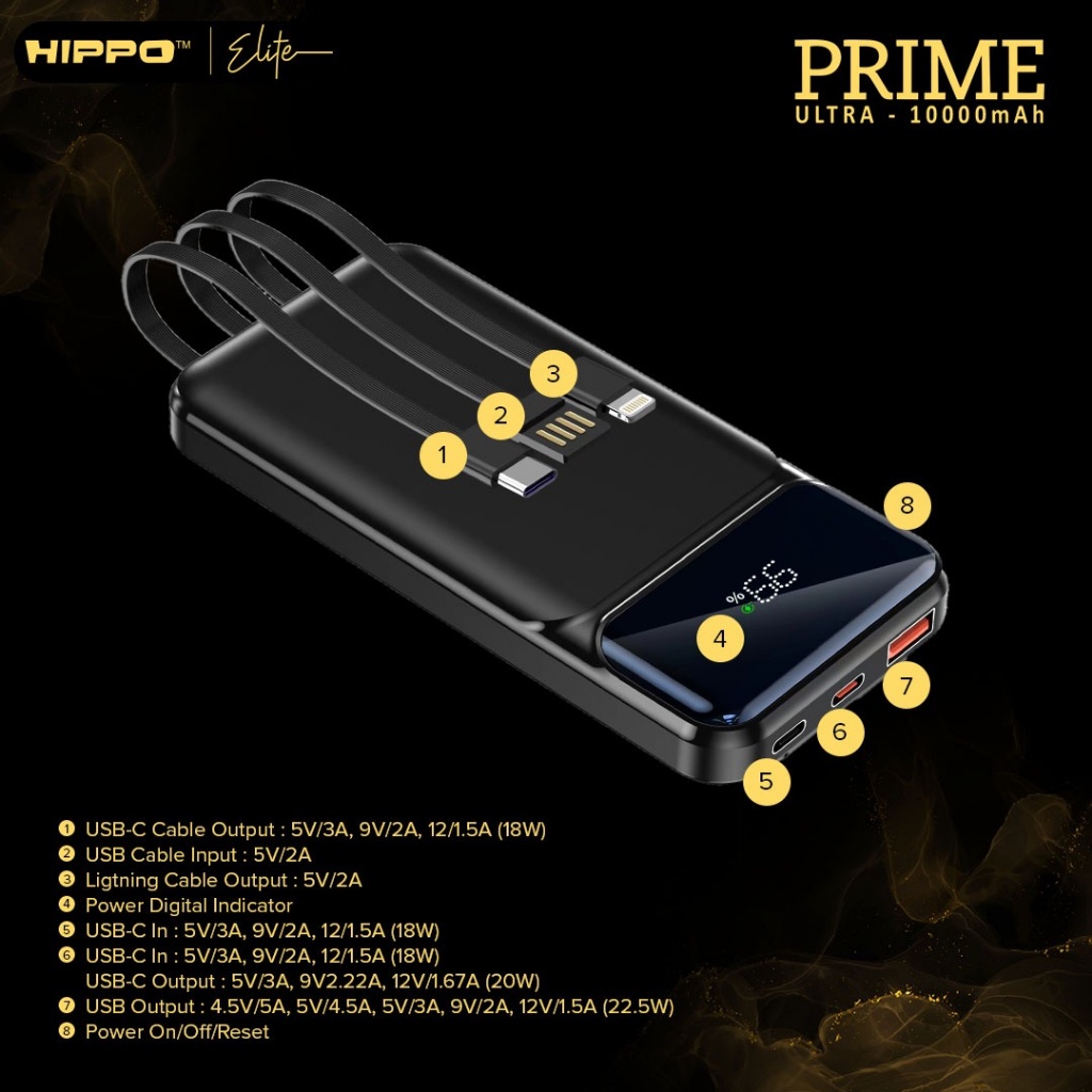 Hippo Elite Powerbank Prime Ultra Pd 22,5W 10000Mah - 20000Mah Quick Charging Power Bank