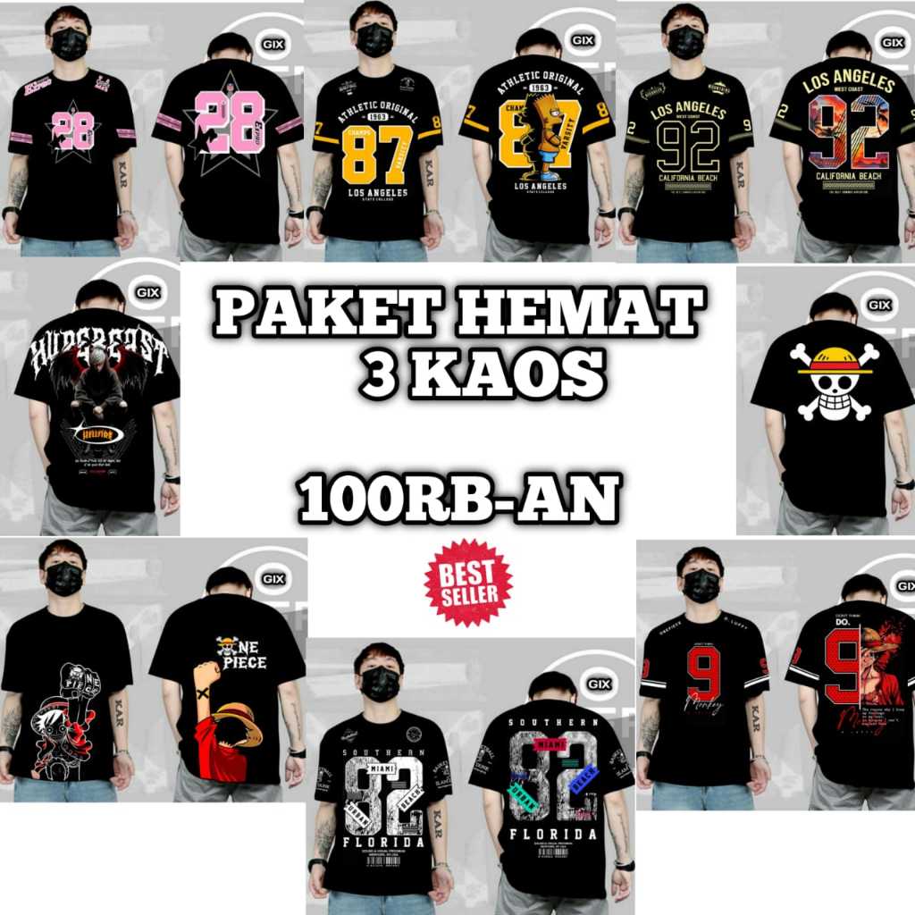 GIX DISTRO / PAKET HEMAT PROMO 3 KAOS Rp 100-AN / Tshirt Distro Pria Wanita Terbaru / Kaos MURAH