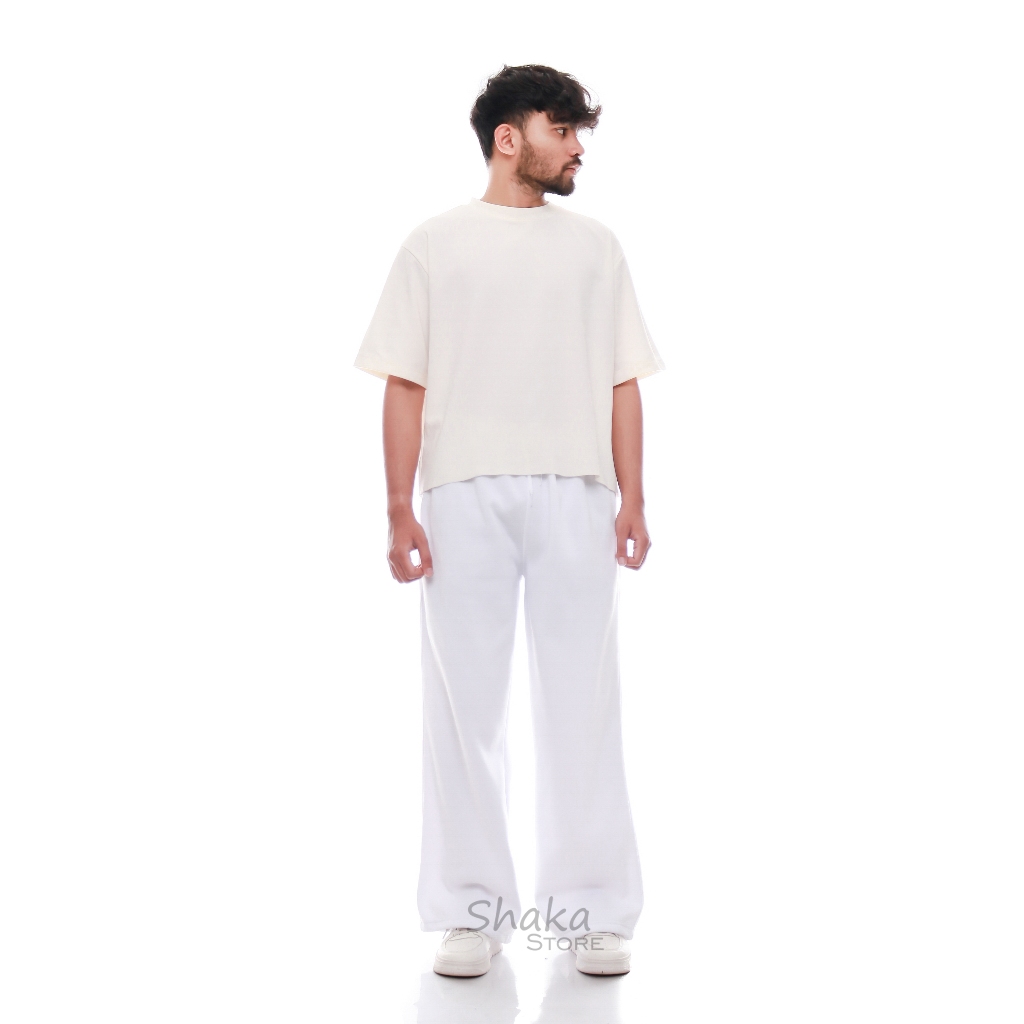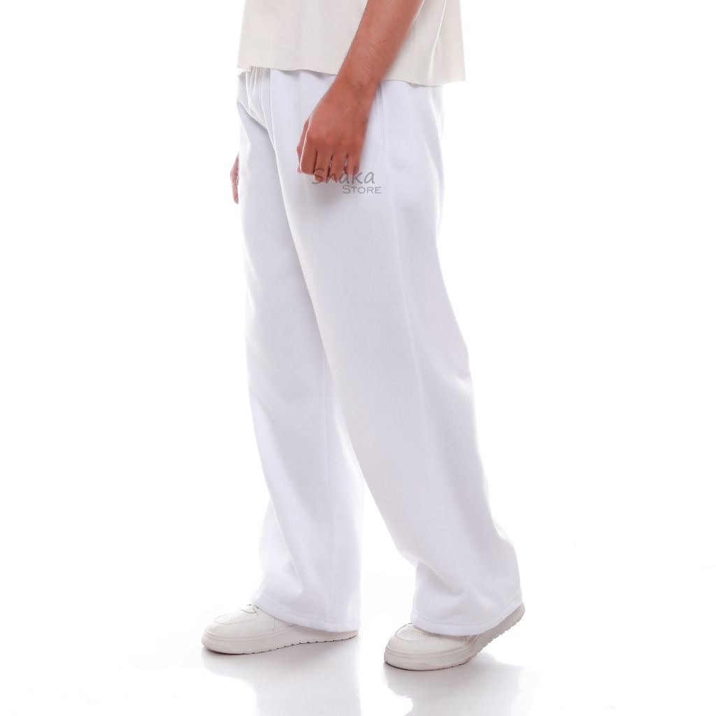 Celana Sweatpants Loose Baggy Oversize Jogger Bahan Fleece Pria Wanita Warna Putih
