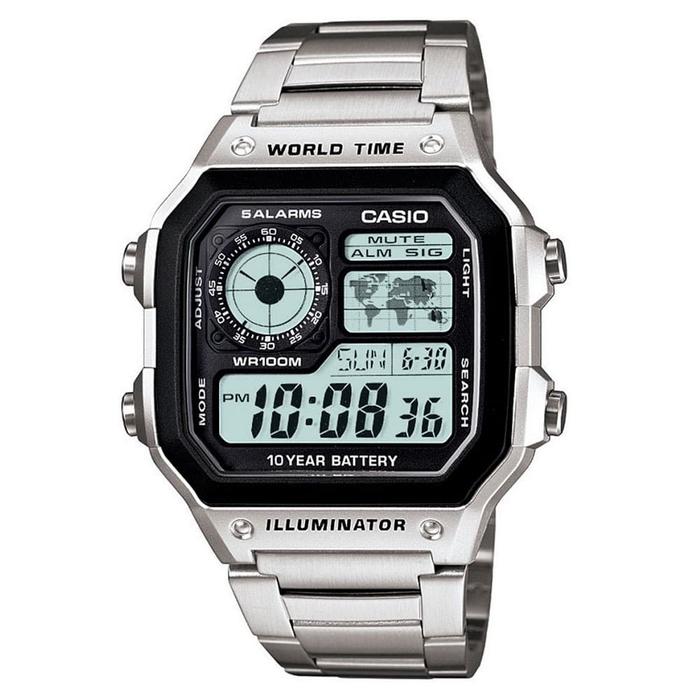 Casio Jam Tangan Digital Pria AE-1200WHD-1AVDF Silver Original