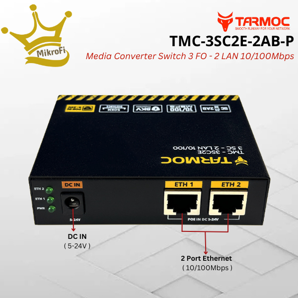 Tarmoc Tmc-3Sc2E-2Ab-P | Media Converter Switch 3Fo 2Lan / 3 Fo 2 Lan 10/100Mbps Poe In 5-24 Volt | 3Sc 2Lan / 3 Sc 2 La