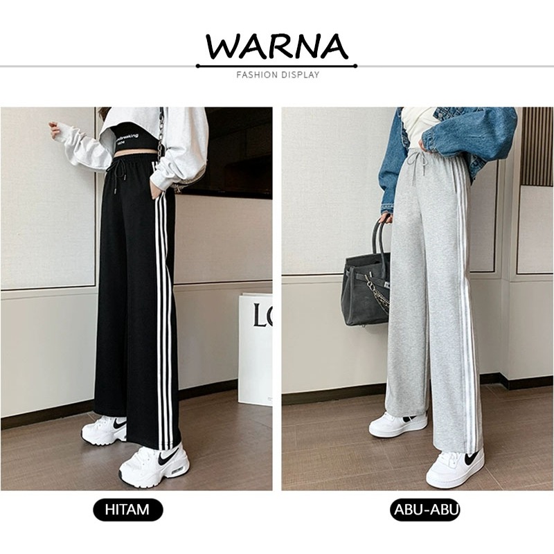 MEET.U S-4XL Celana Kasual Korea Celana Olahraga Celana Kaki Lebar Celana Wanita