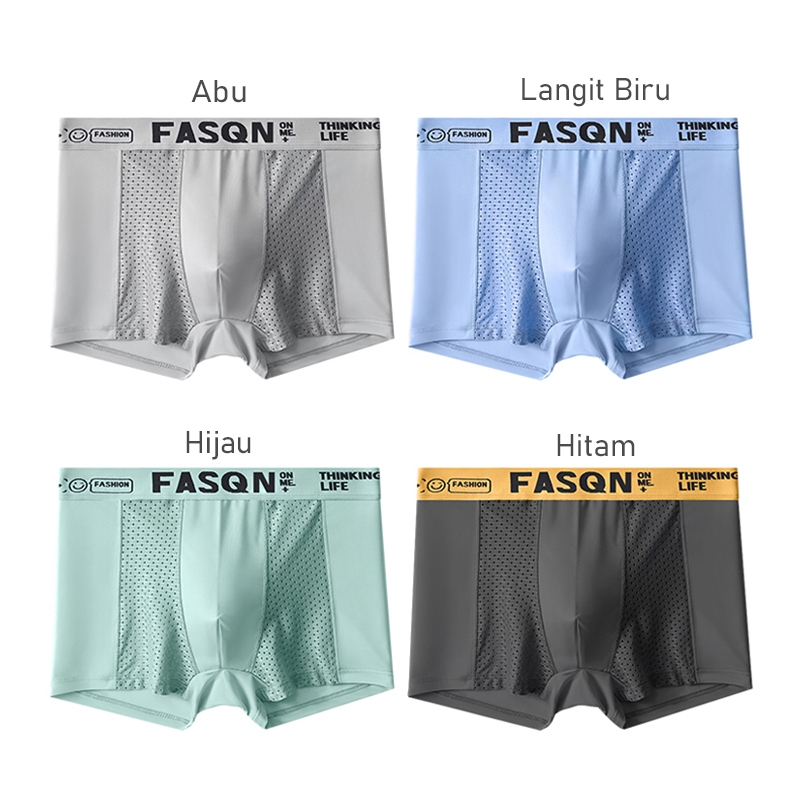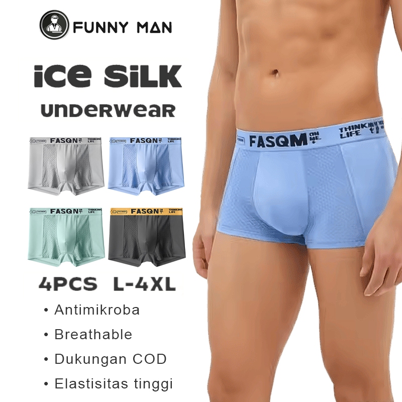 PAKET 4 PCS Celana Dalam Boxer Pria Ice Silk Adem Lembut Tipis Antibakteri CD/celana dalam pria